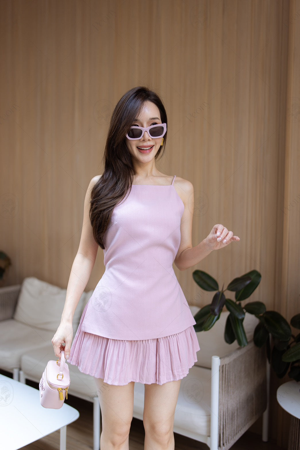 🤍 Presenting a refined two-piece set crafted from a blended linen fabric featuring a subtle woven pattern for added texture and sophistication. The set includes a sleeveless, side-slit top with adjustable waist ties, designed to offer a flattering and elegant silhouette. It is paired with a finely pleated skirt, thoughtfully lined with built-in shorts to ensure comfort and confidence in every movement. Worn together, this ensemble delivers a graceful, polished look—ideal for creating a poised and ladylike impression.