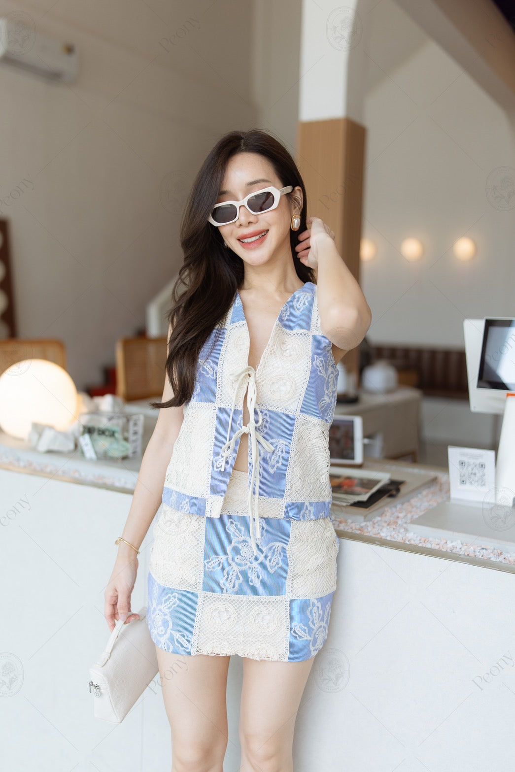 🤍 This refined two-piece ensemble is meticulously crafted from a specially woven, high-quality fabric that offers both structure and elegance. The top features a graceful V-neckline with a front tie detail, designed to enhance the silhouette with understated femininity. It is thoughtfully paired with a coordinated short skirt, creating a polished and cohesive look. Both pieces may also be styled separately, offering versatile wardrobe options with enduring sophistication.