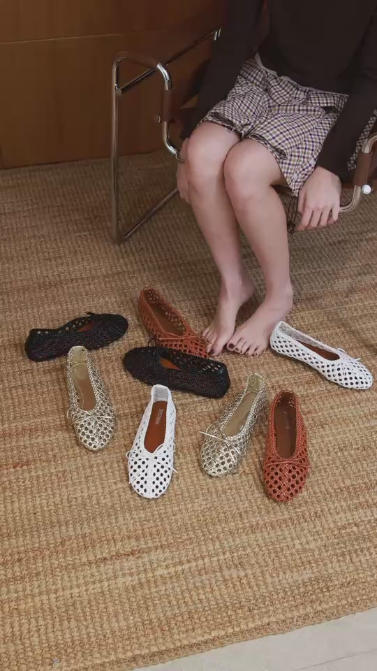 รองเท้าคัทชู หนังไมโคร ถักสาน แต่งโบว์