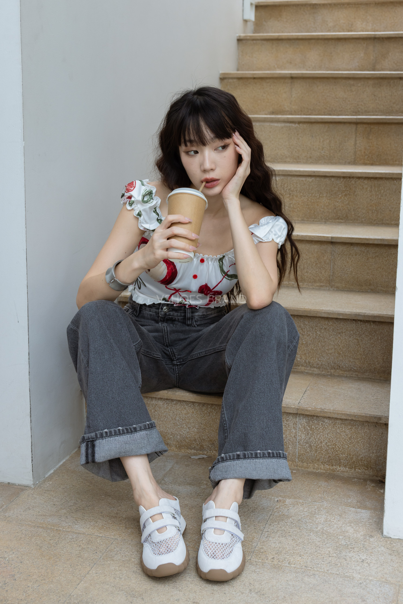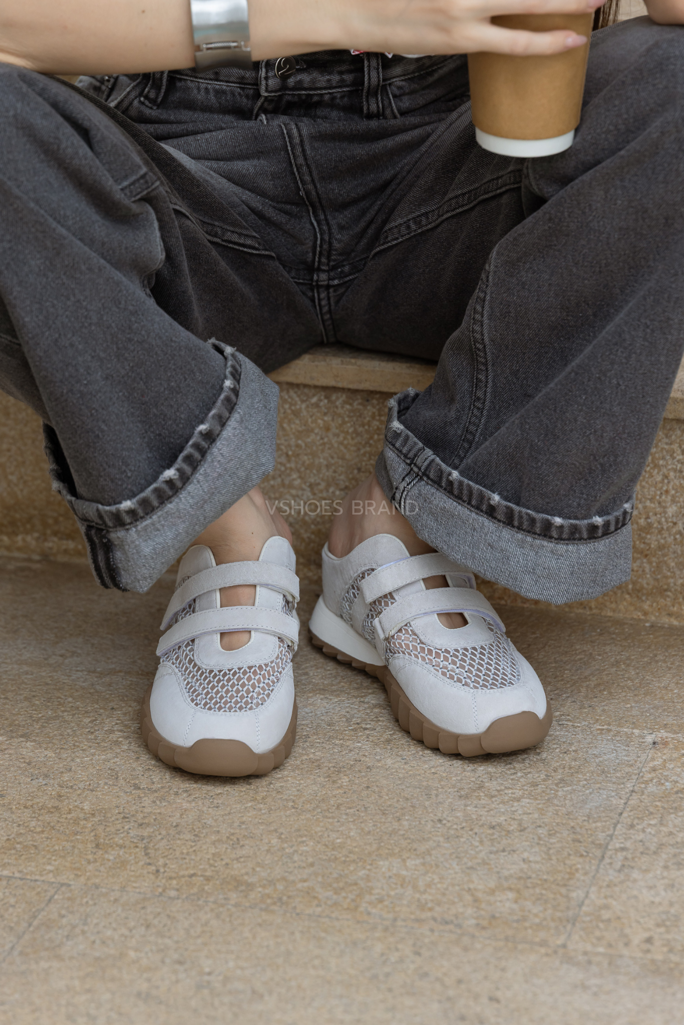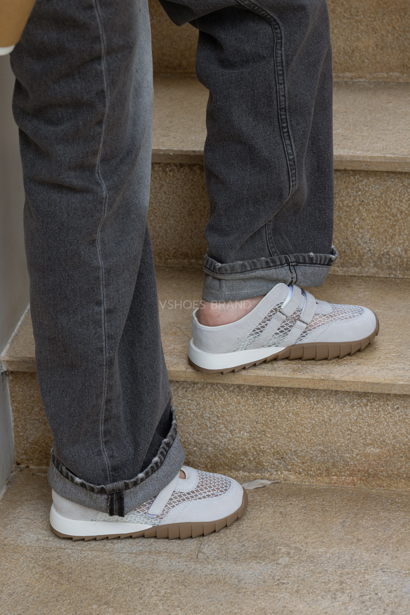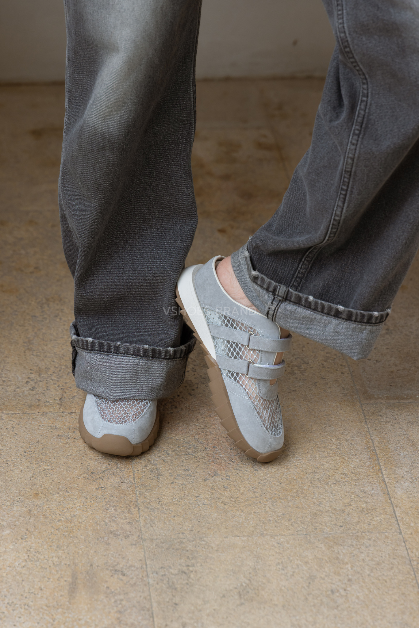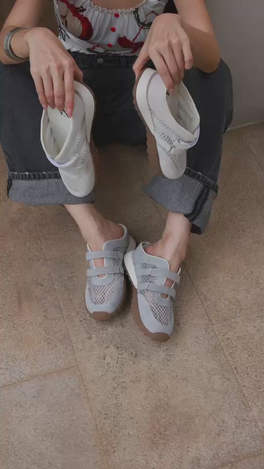 Open toe sneakers, suede, mesh, rhinestone decorated with 2 strap.