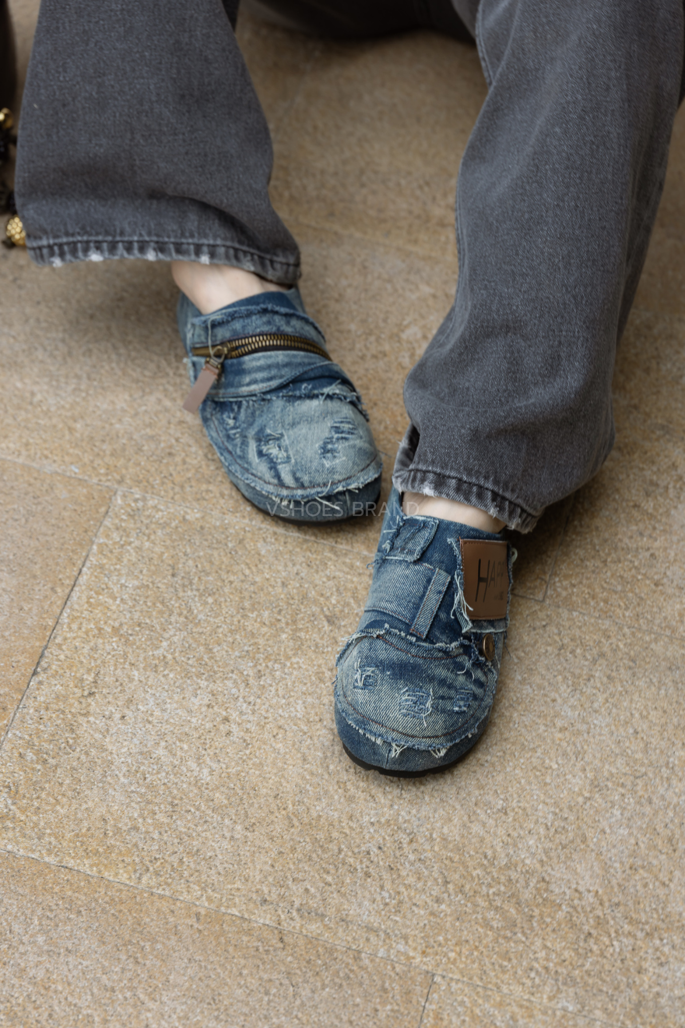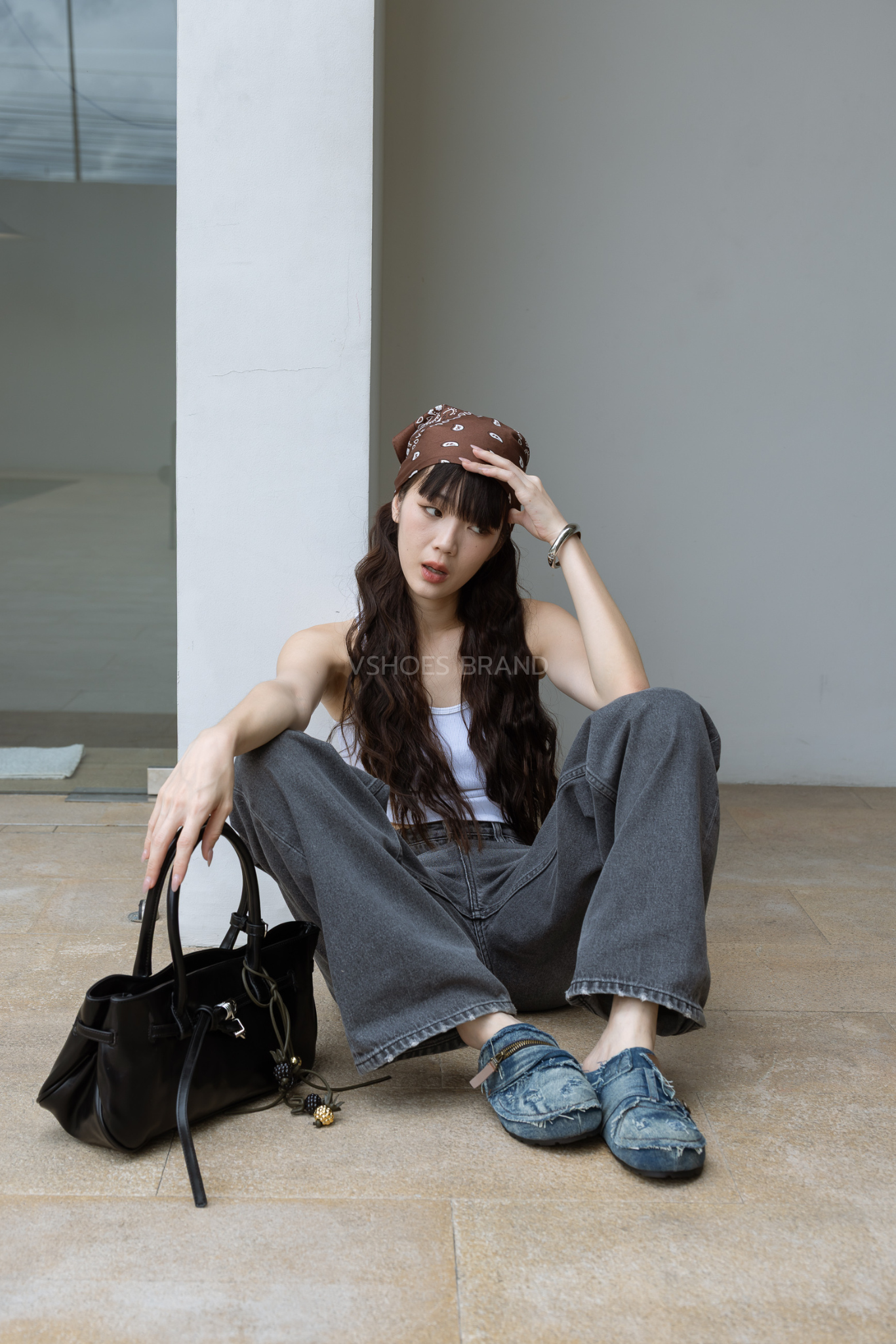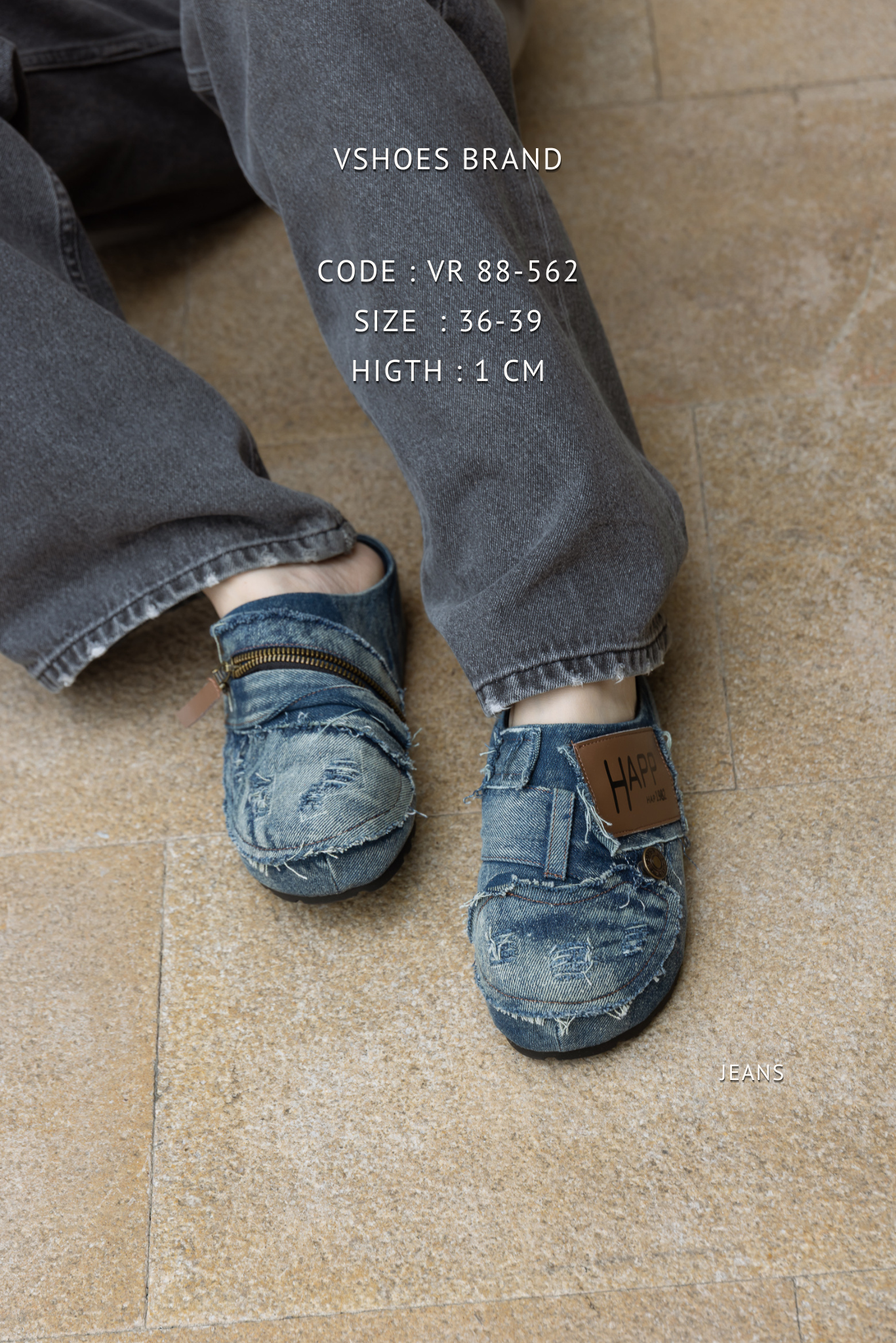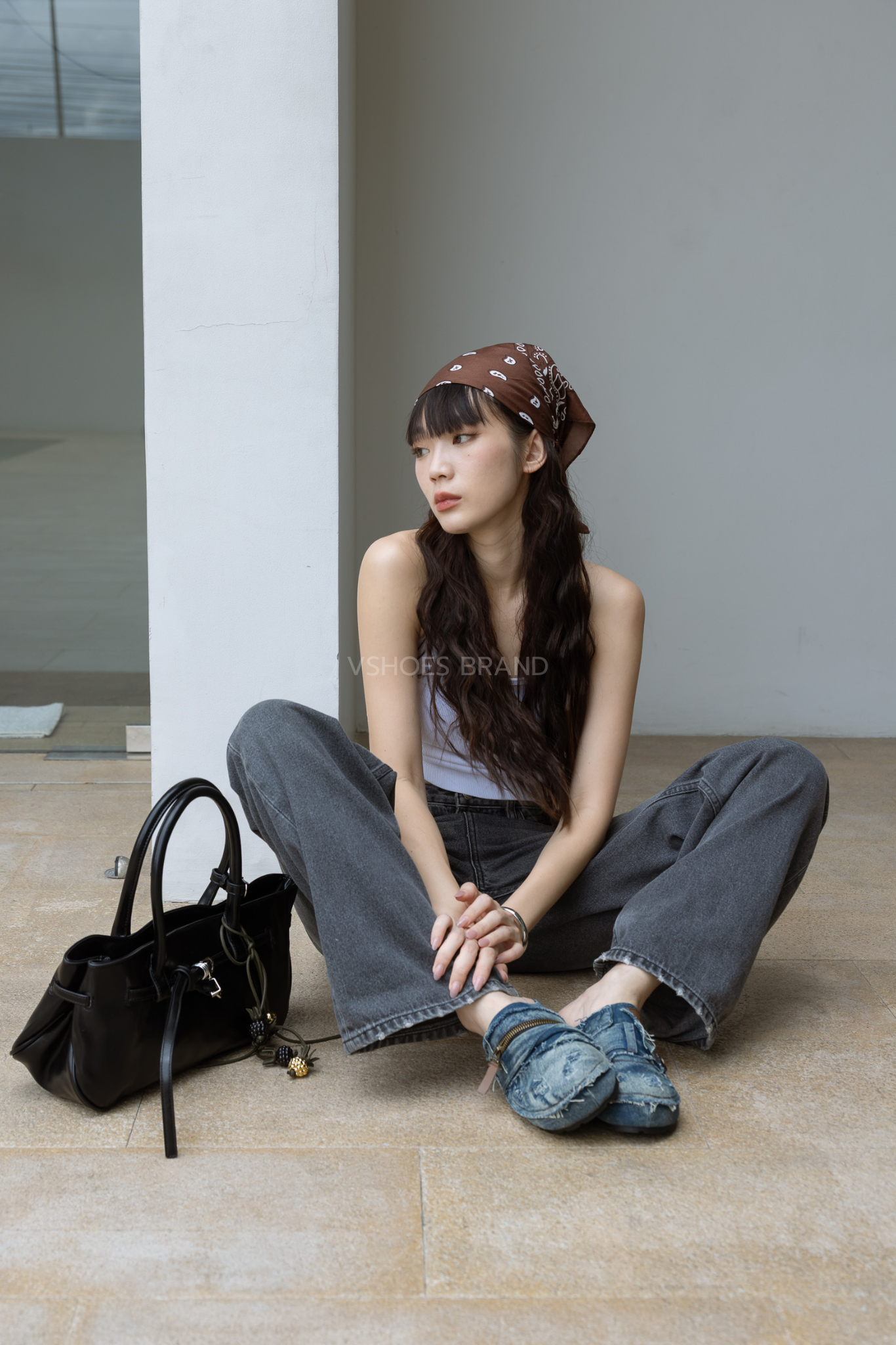 รองเท้าแตะเปิดส้น ผ้ายีนส์ พื้นนุ่ม เก๋ ๆ