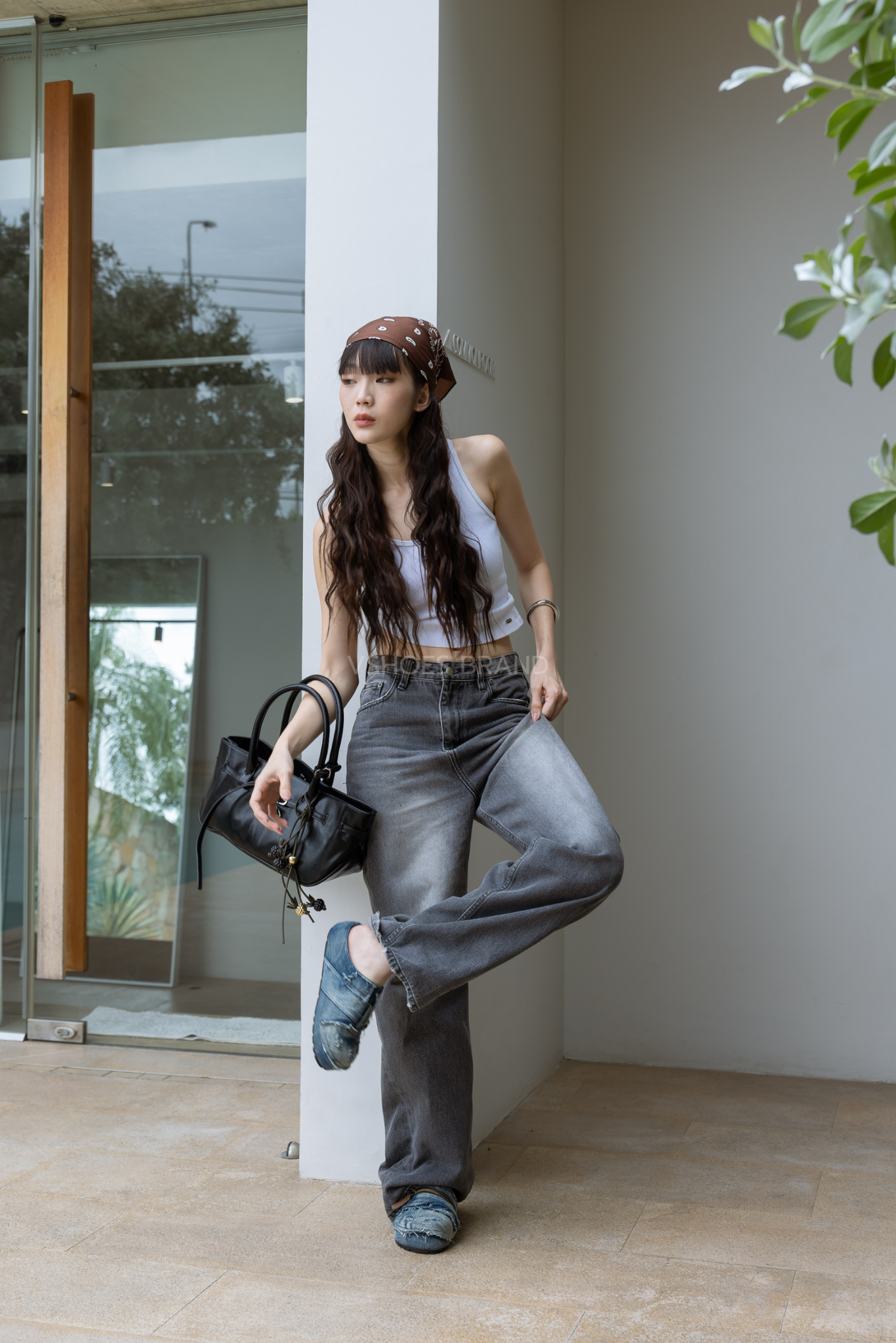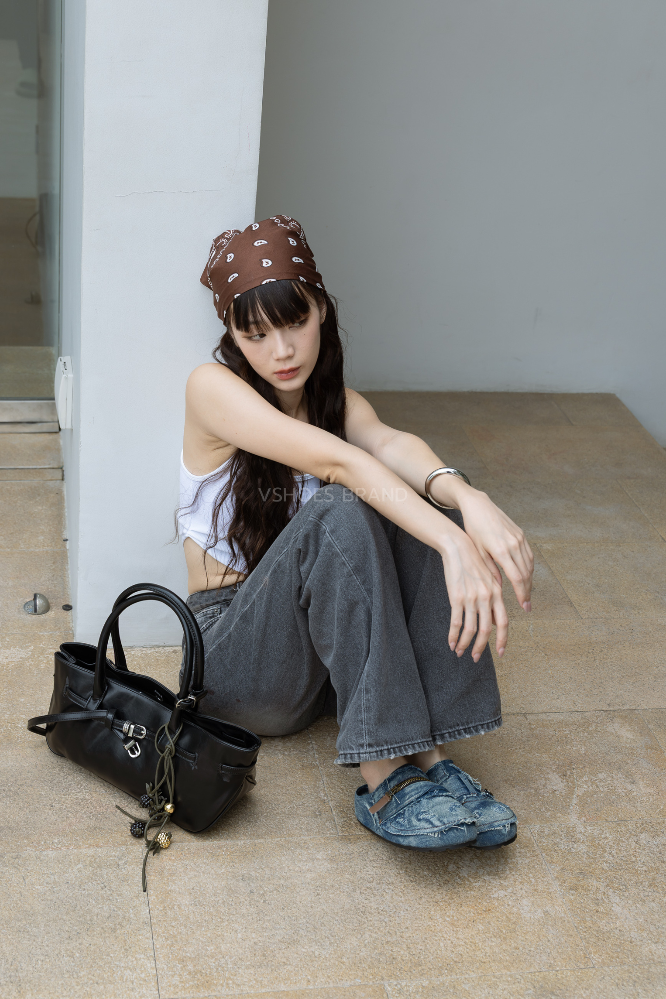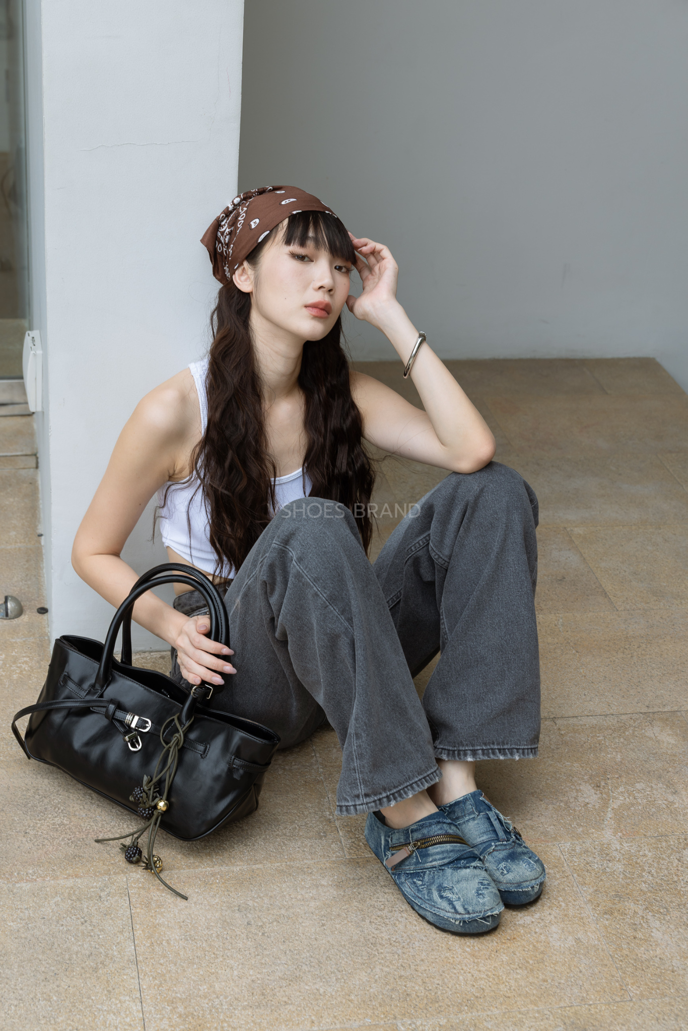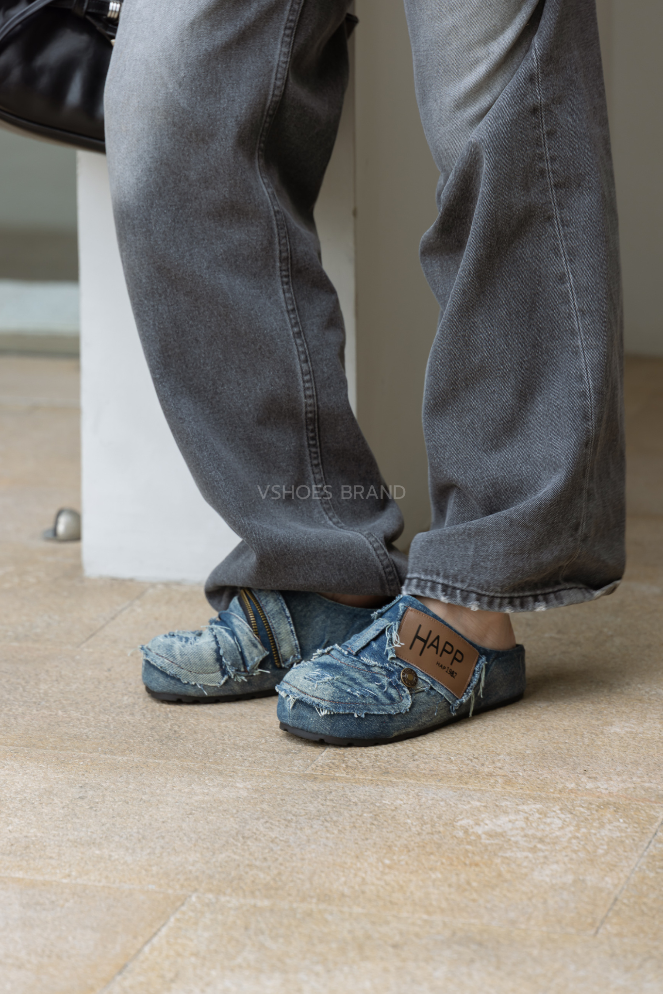 รองเท้าแตะเปิดส้น ผ้ายีนส์ พื้นนุ่ม เก๋ ๆ