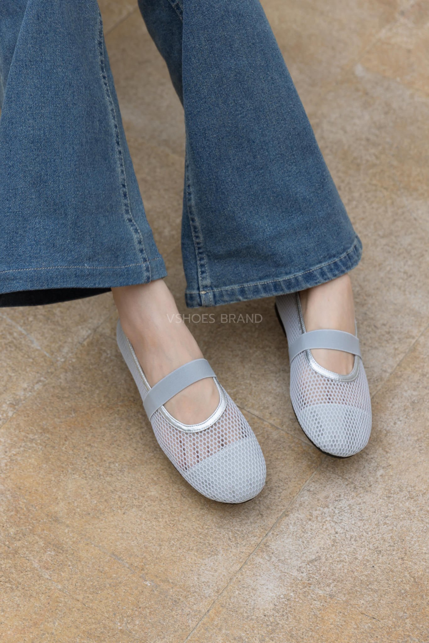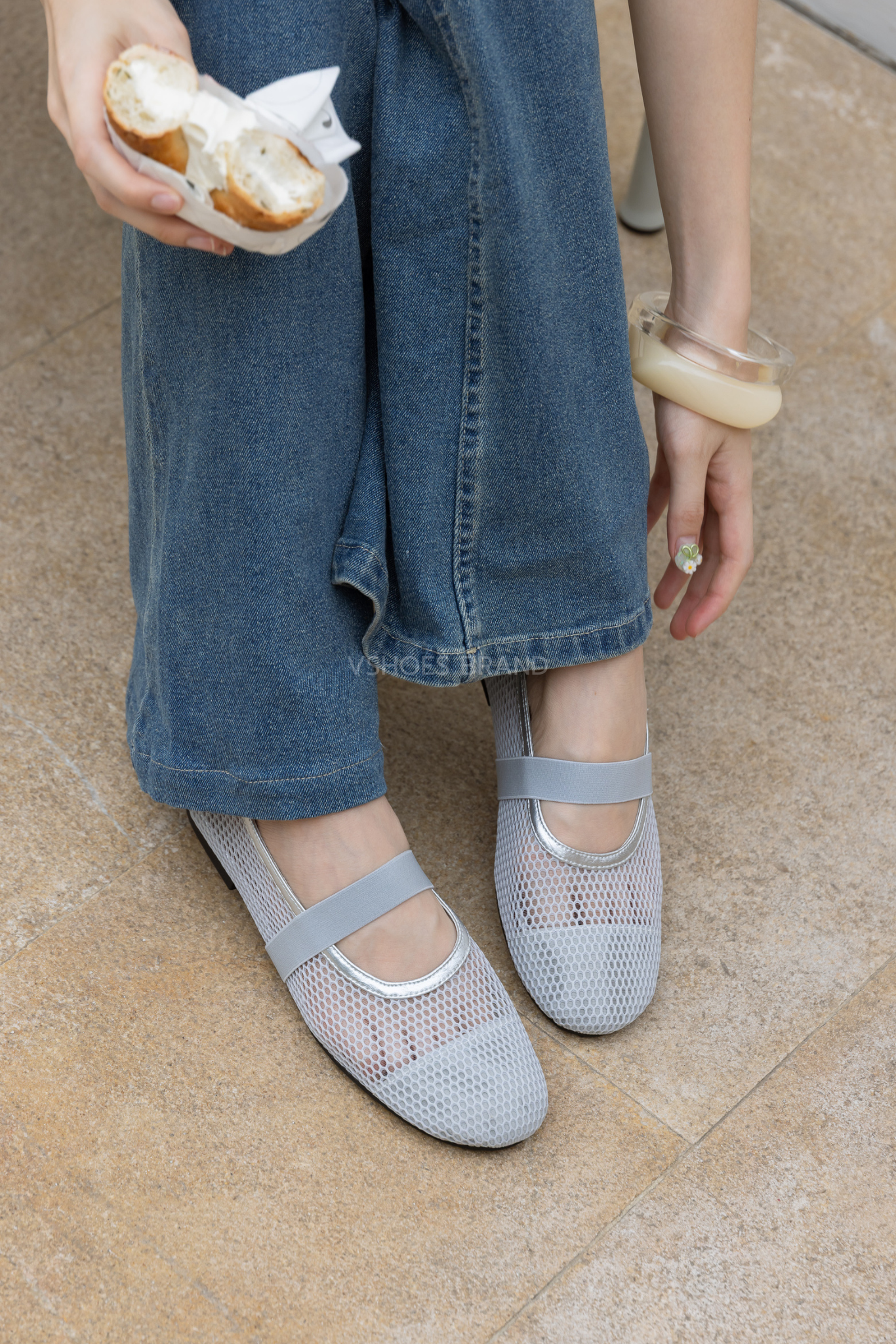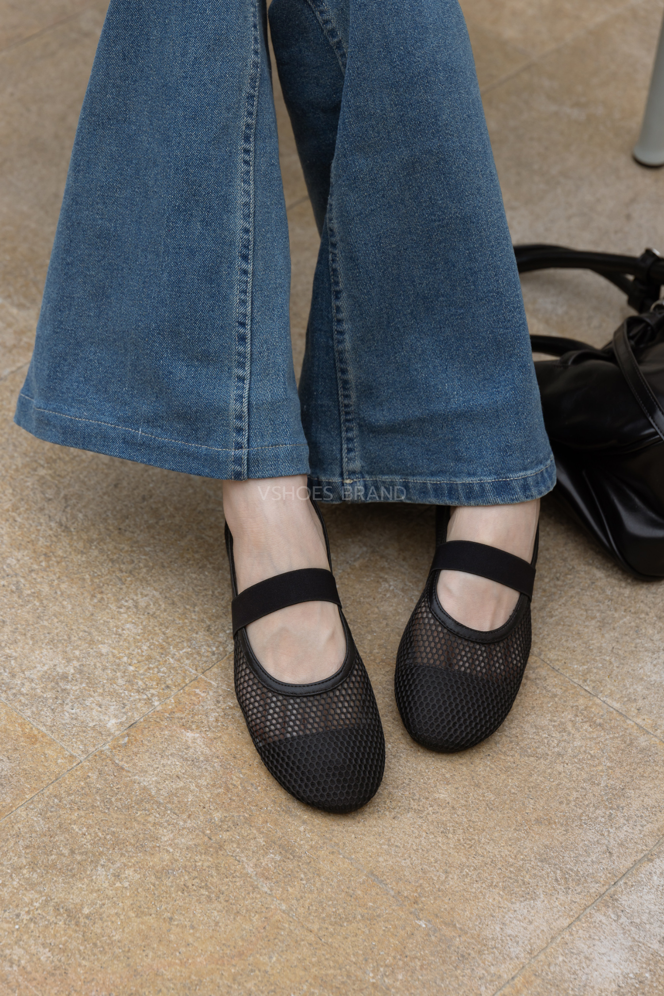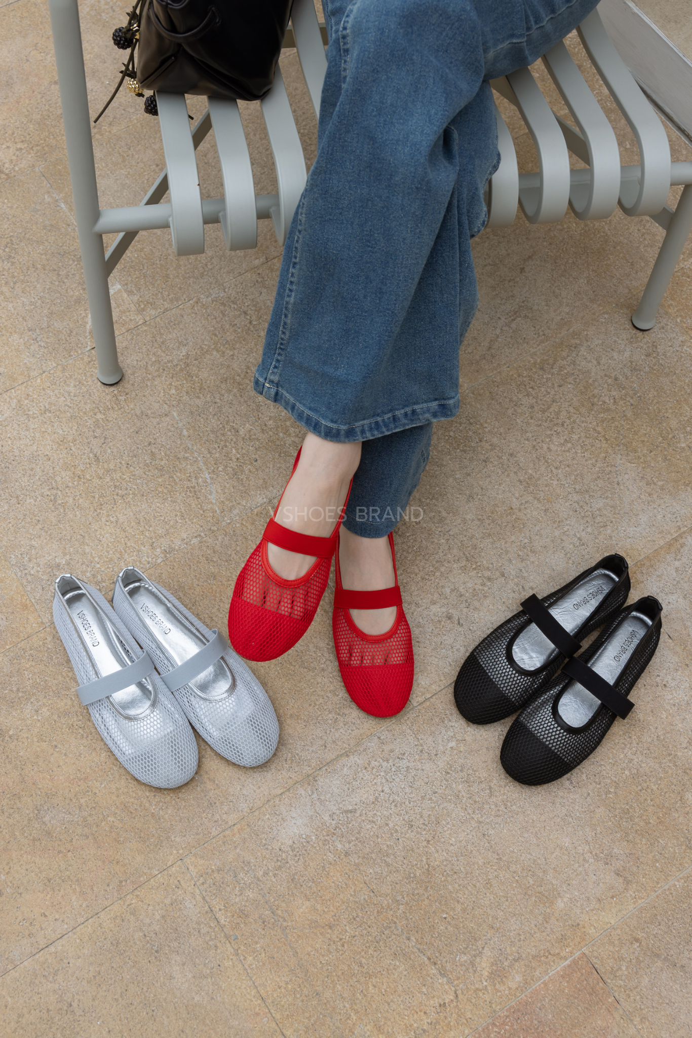 รองเท้าแมรี่เจน ตาข่าย สายคาดยืดหยุ่นได้