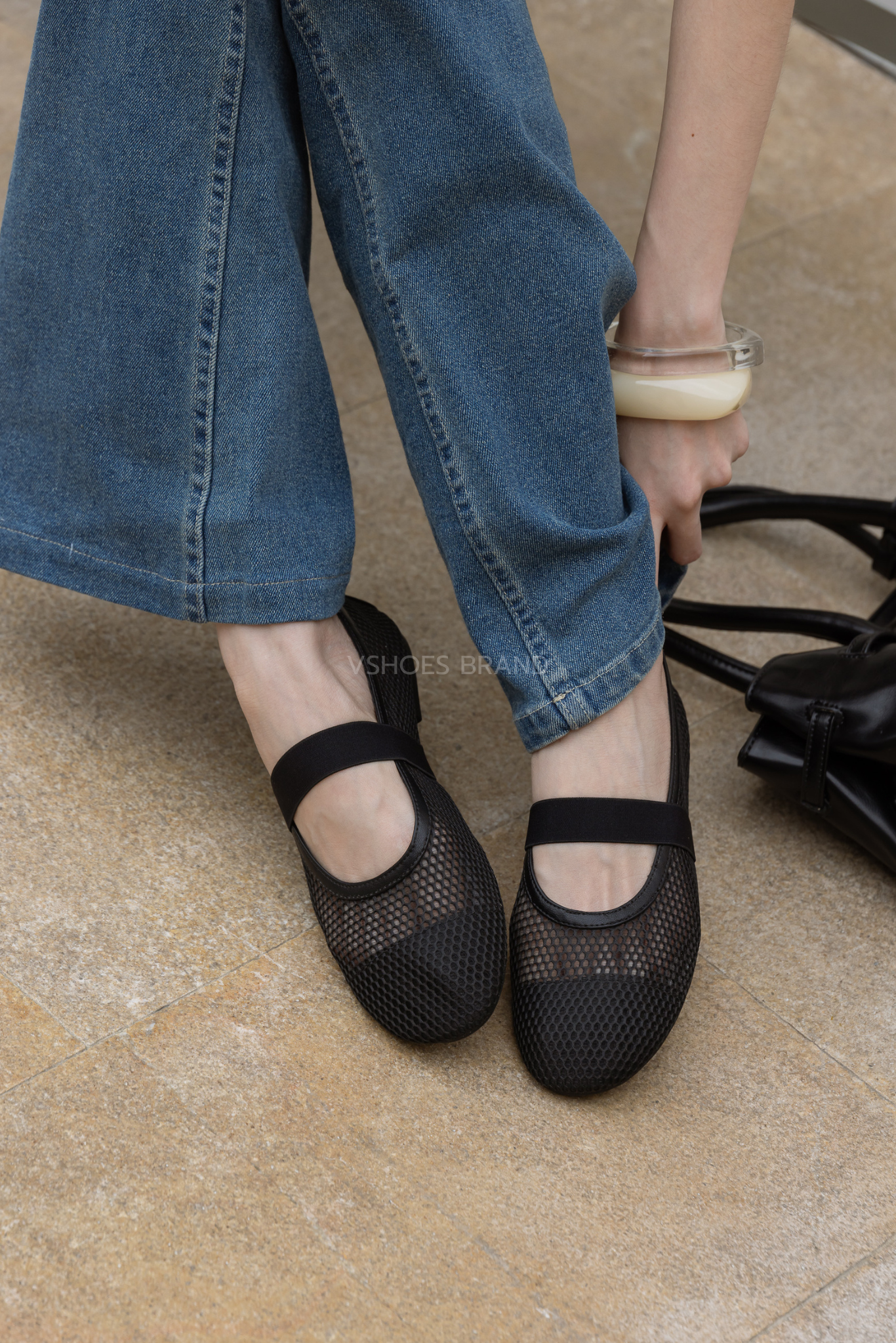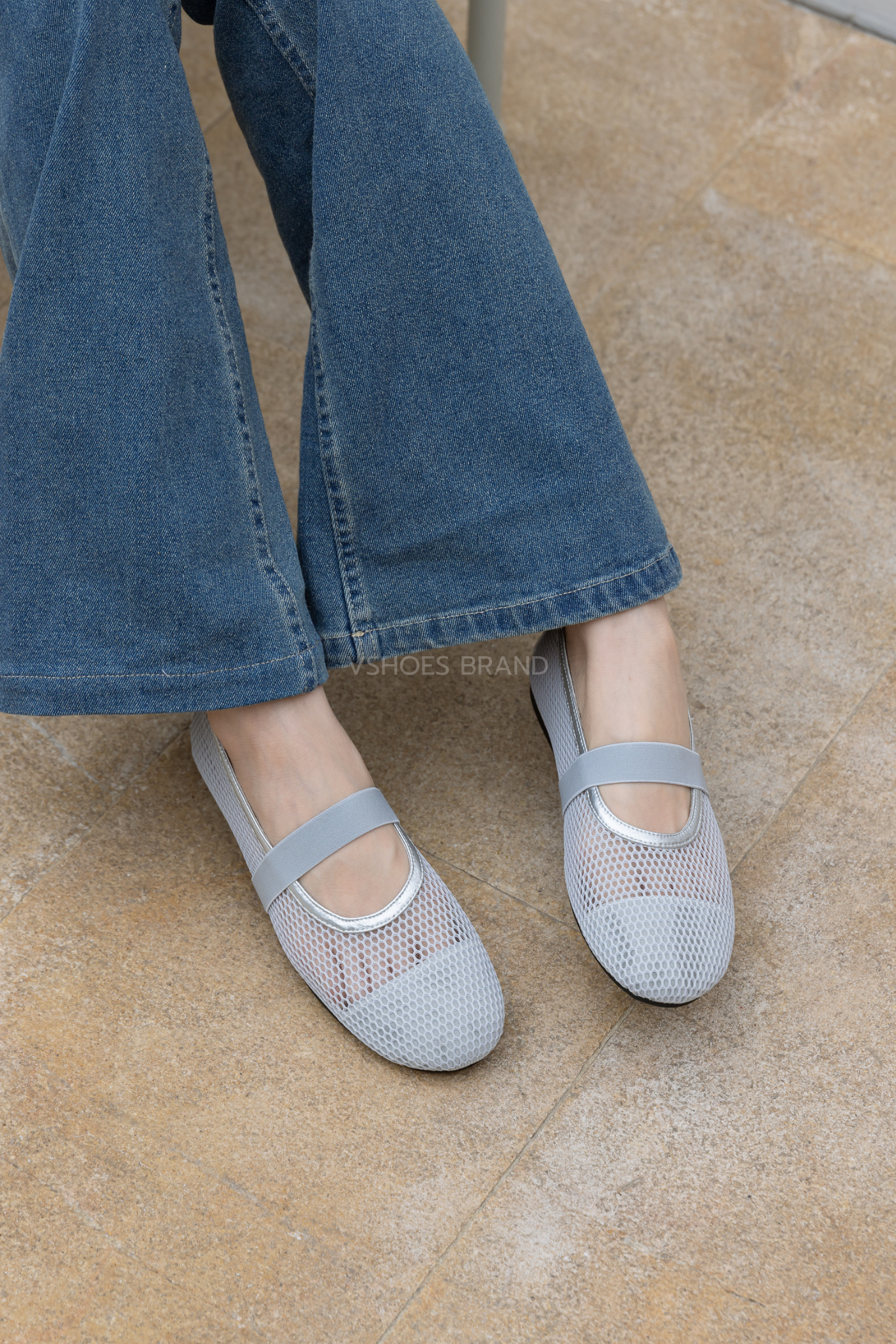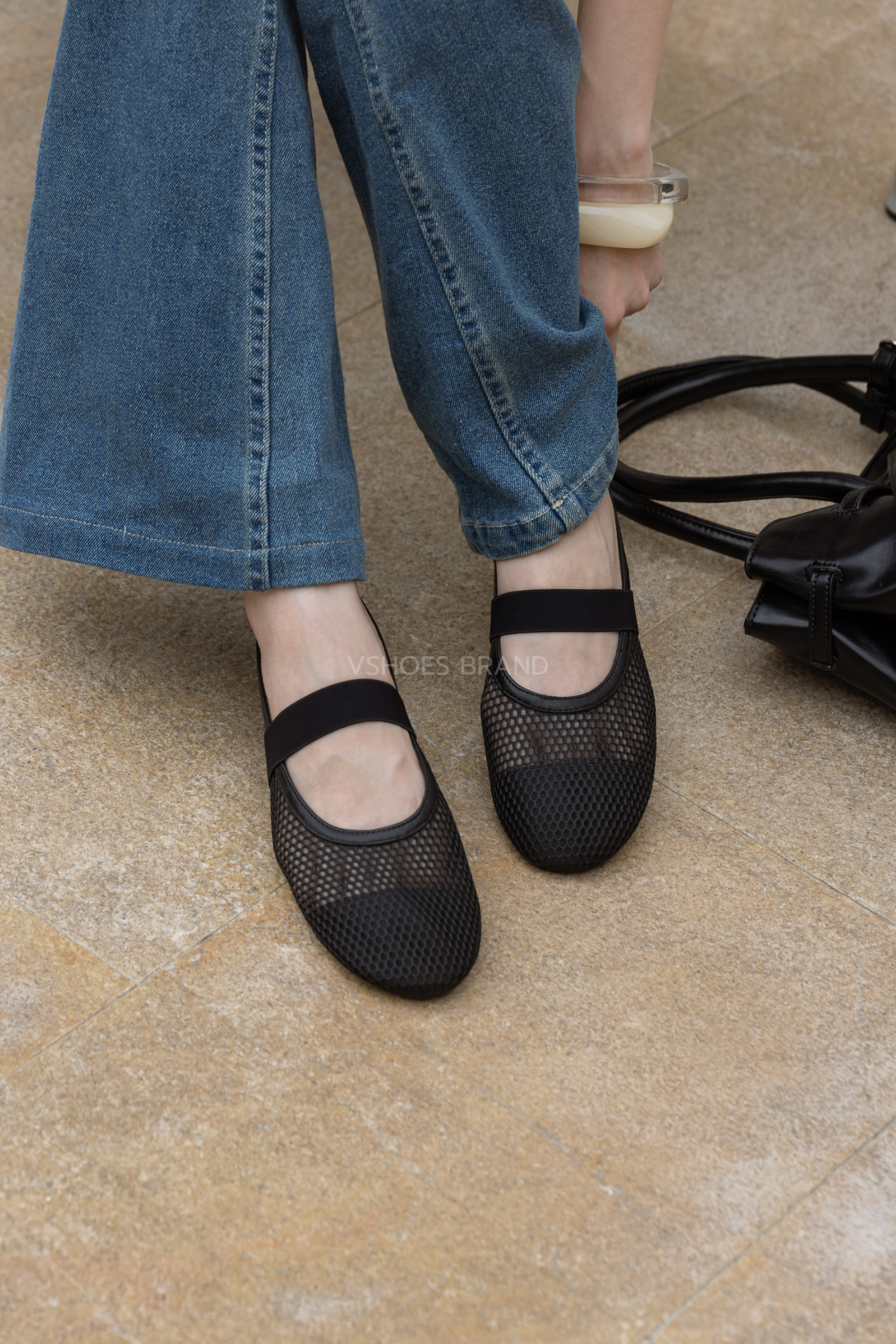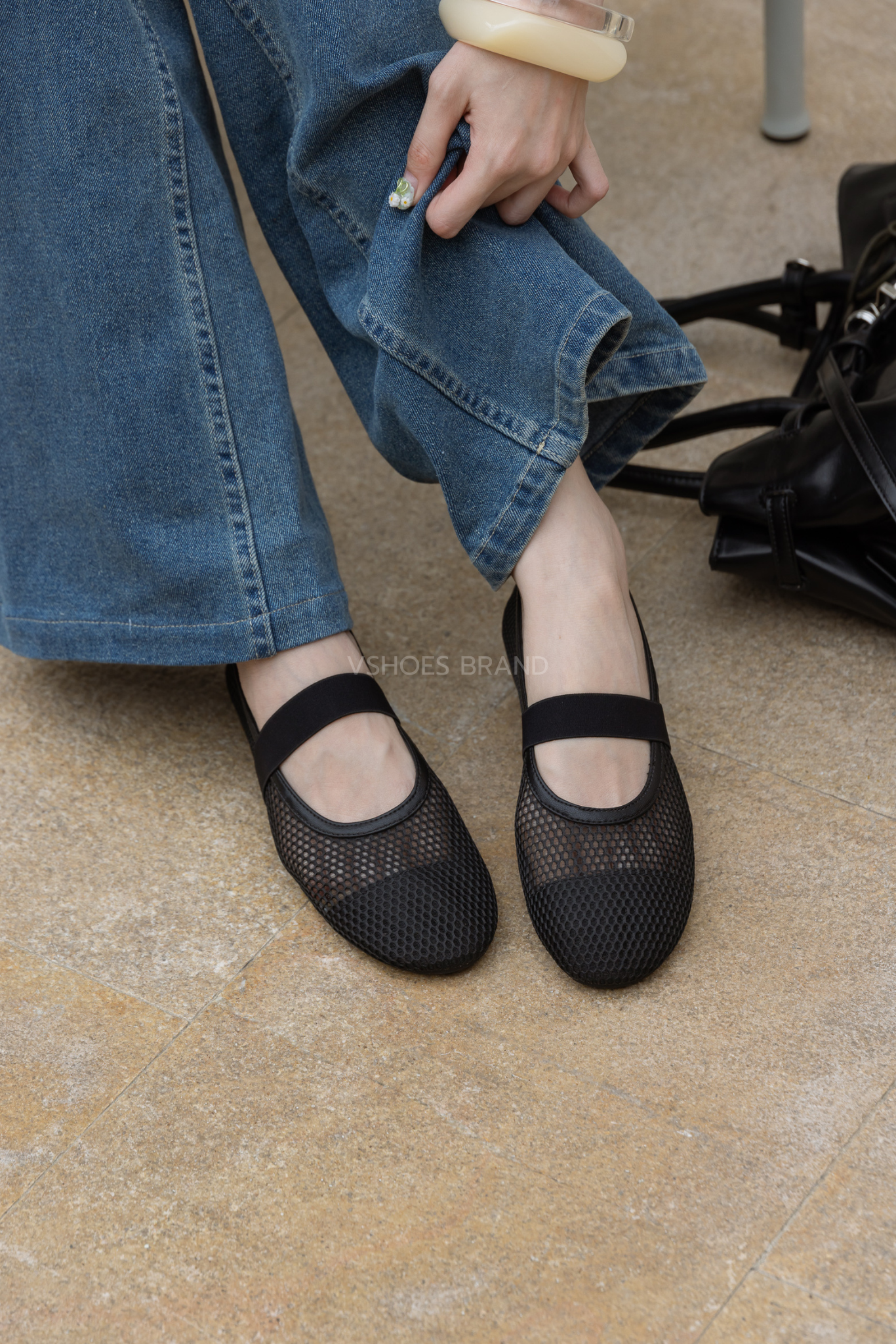 รองเท้าแมรี่เจน ตาข่าย สายคาดยืดหยุ่นได้