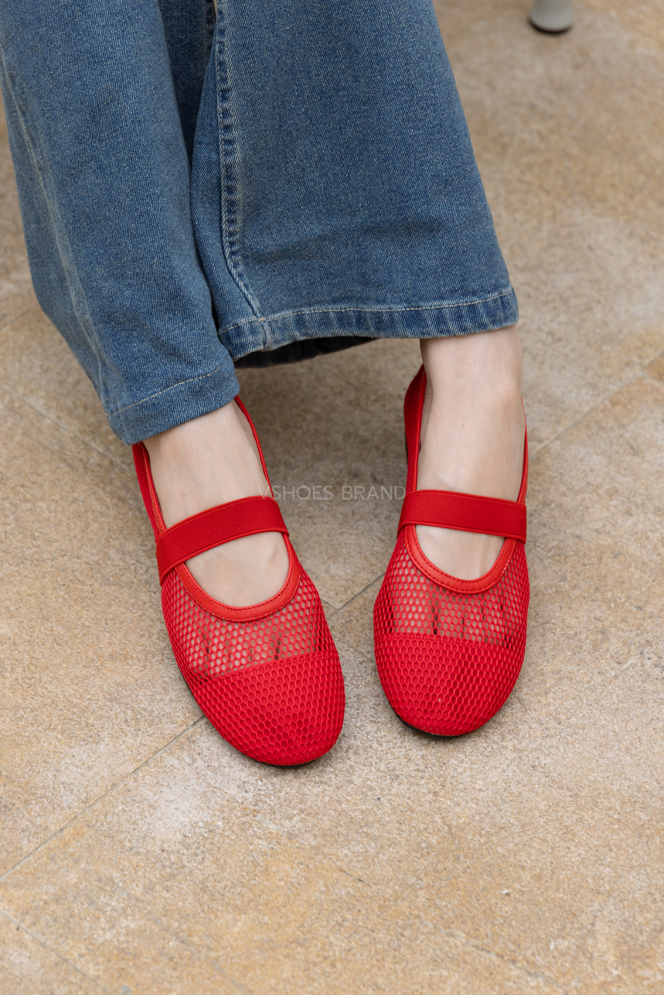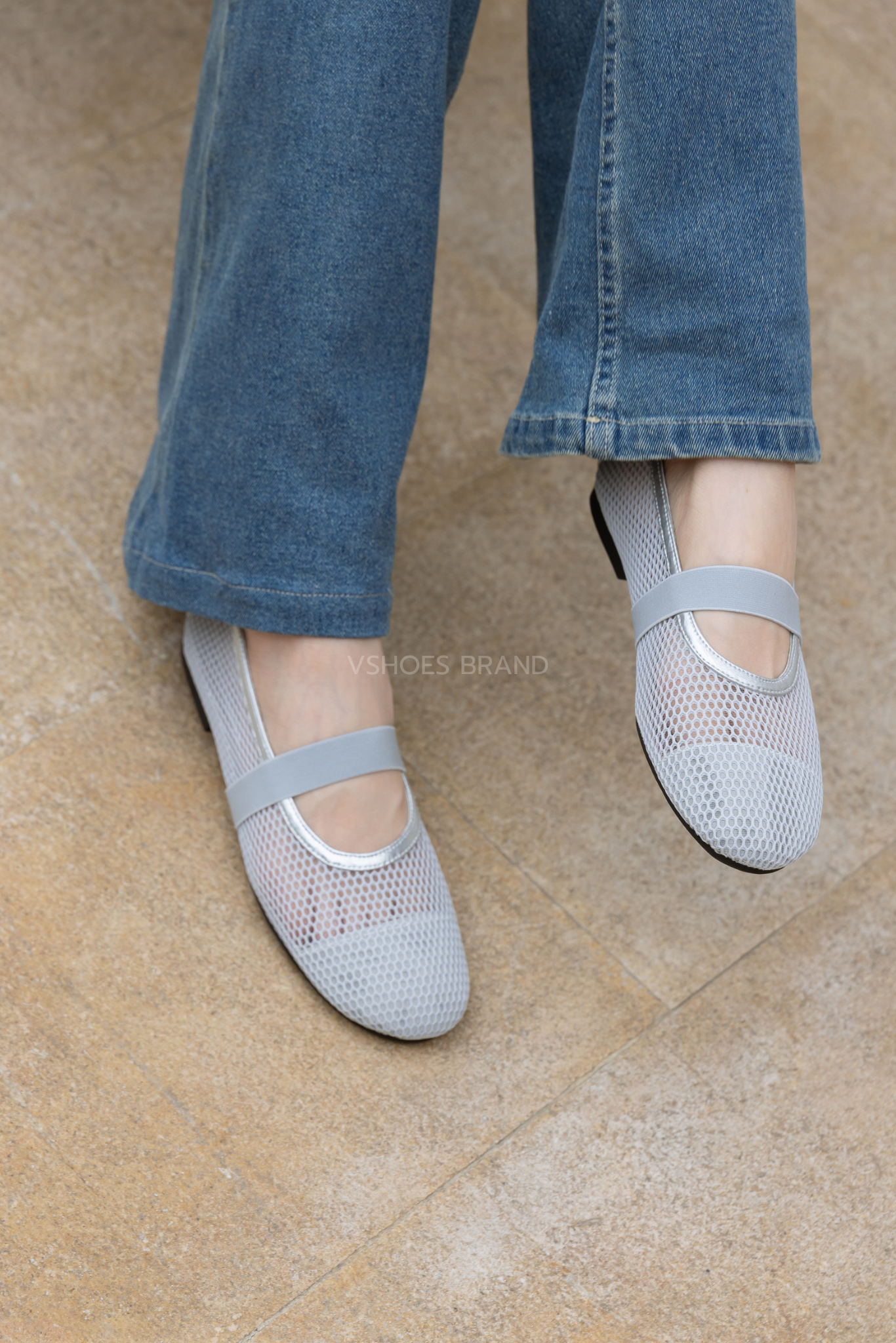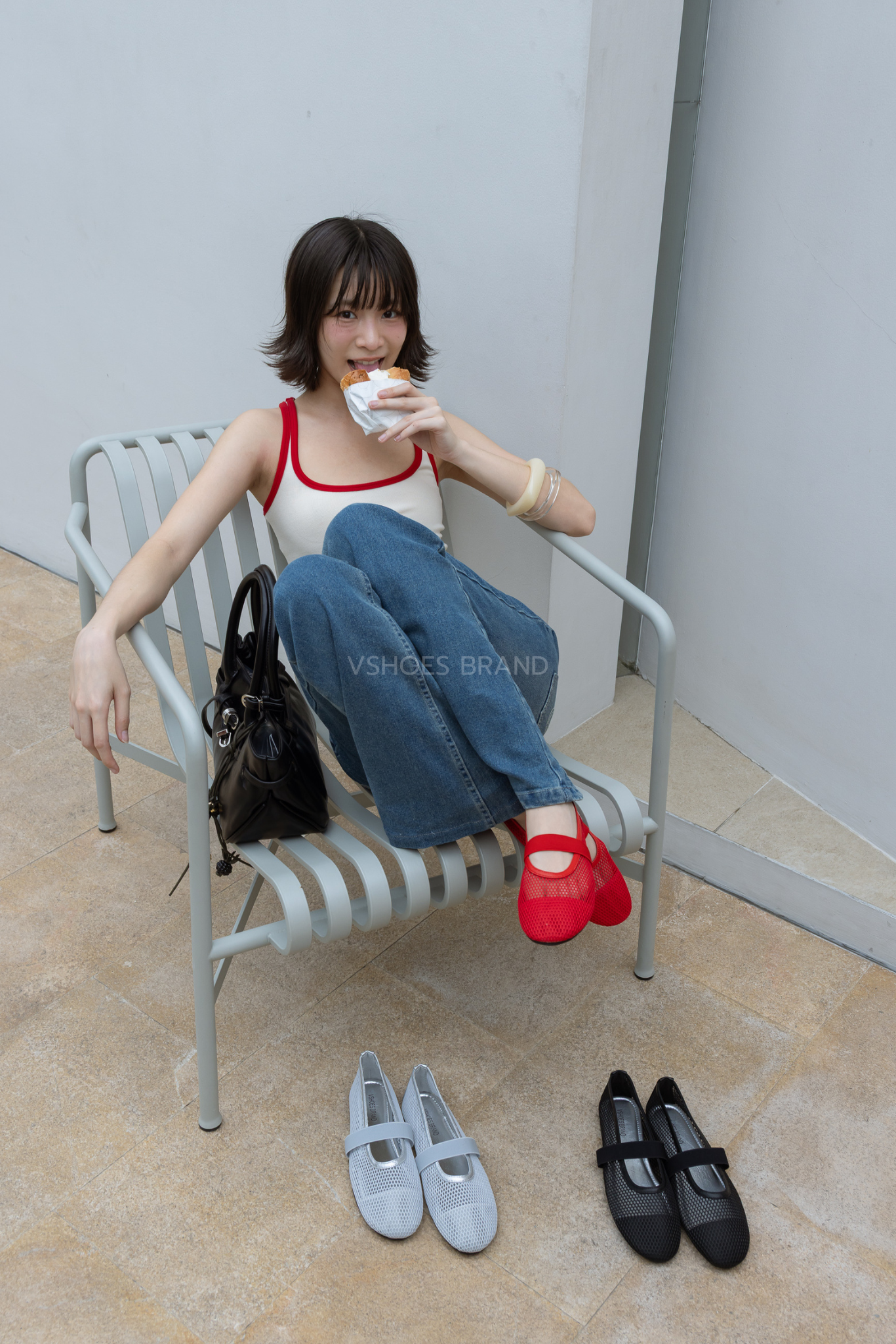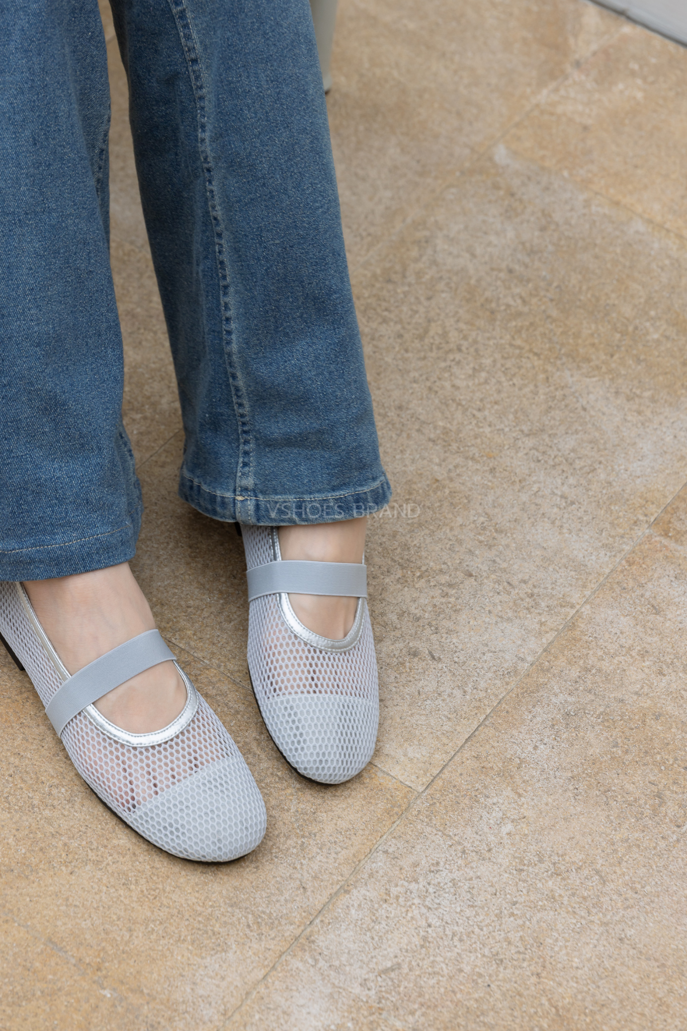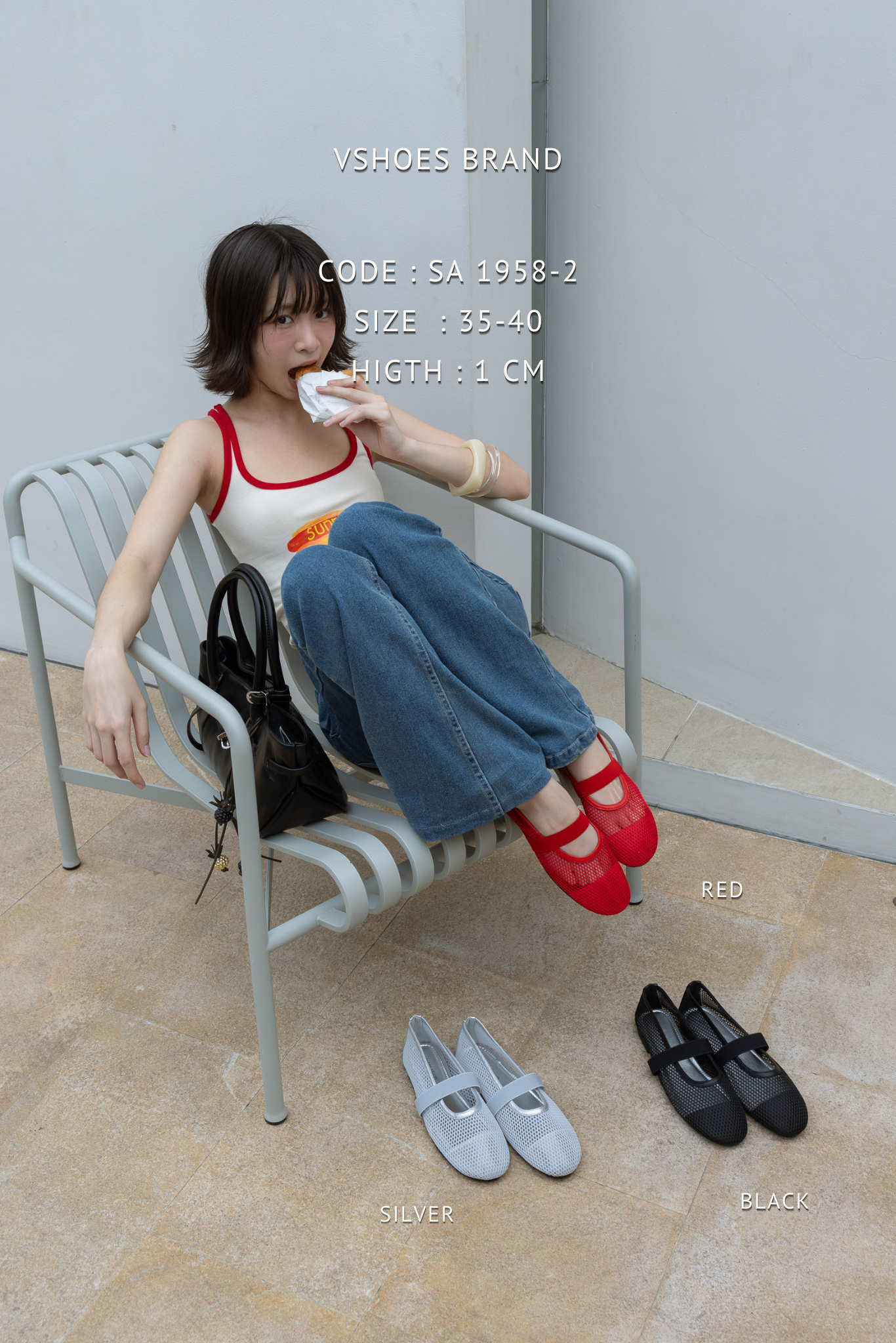 รองเท้าแมรี่เจน ตาข่าย สายคาดยืดหยุ่นได้
