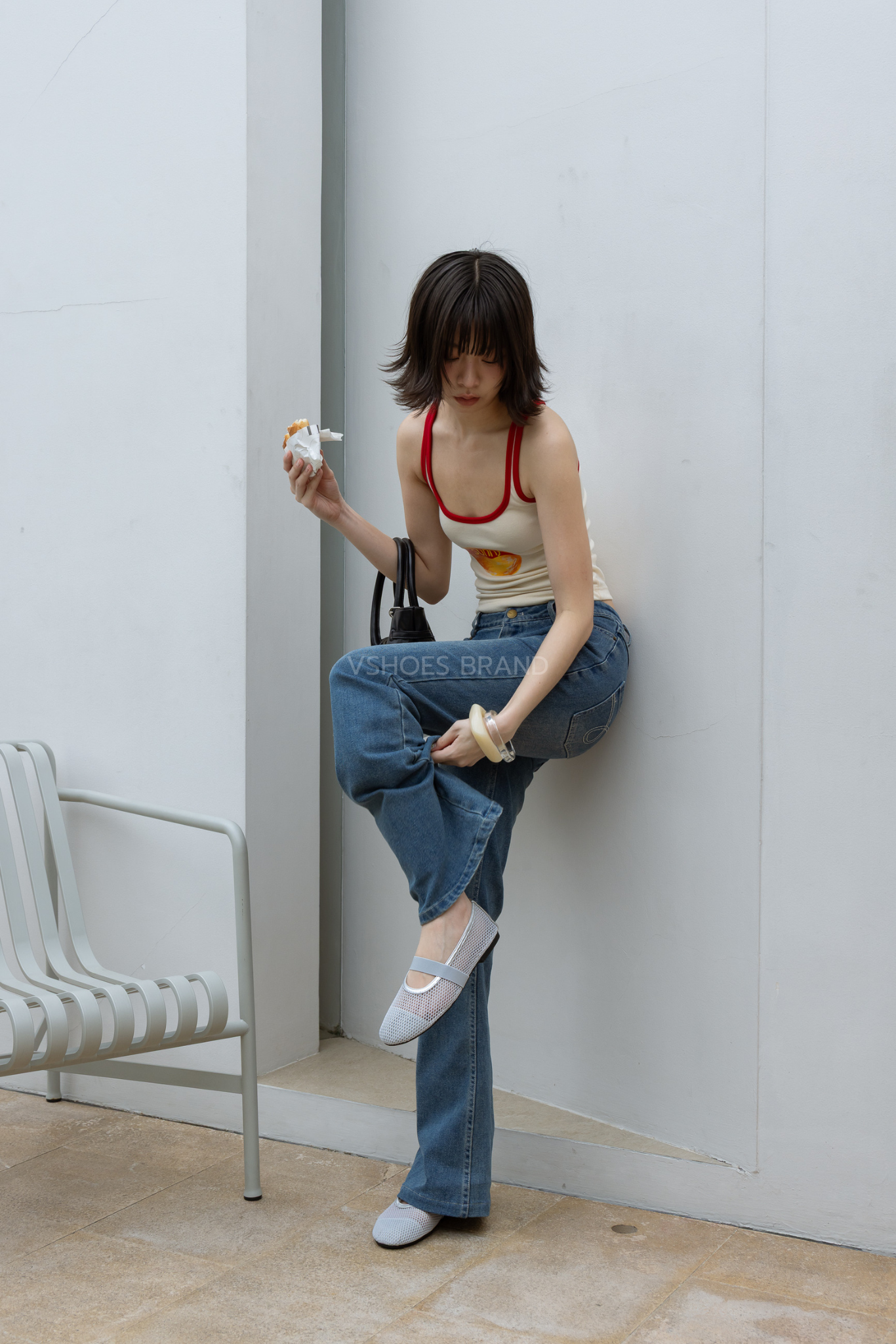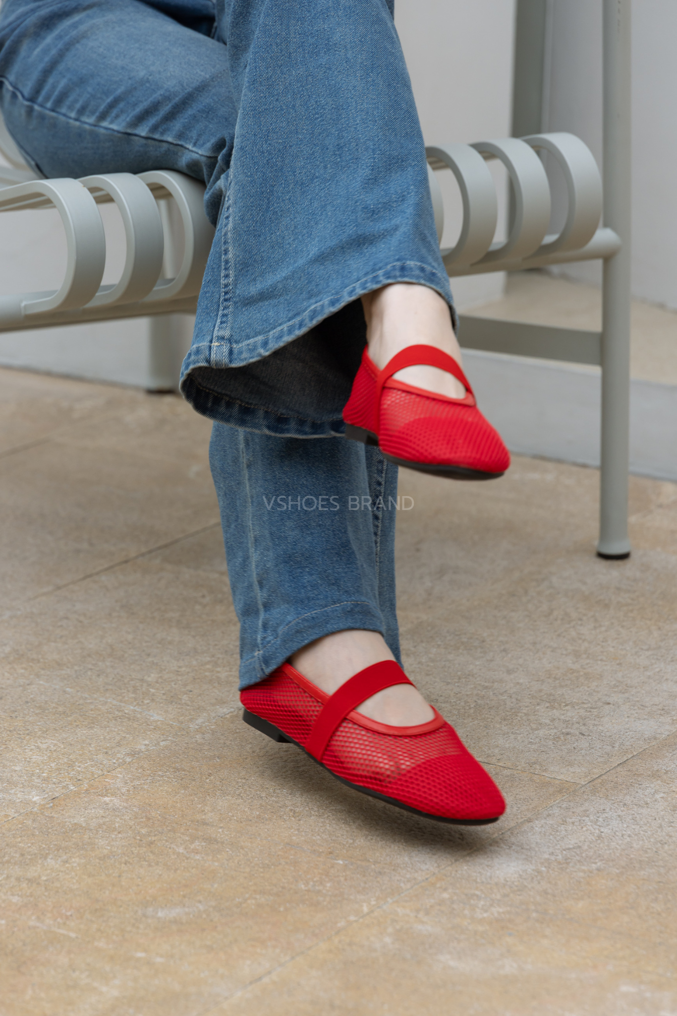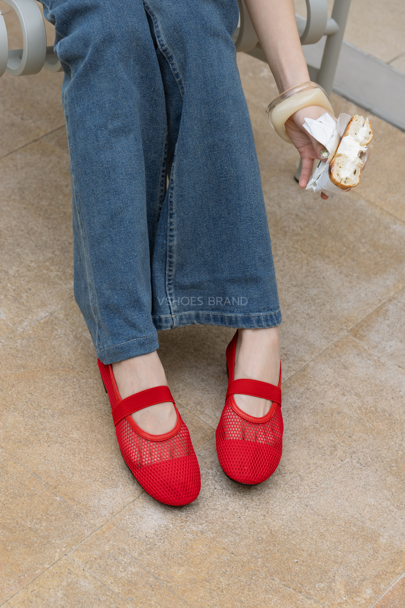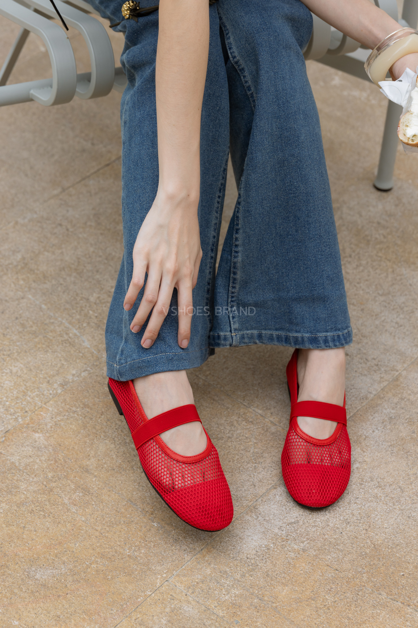 รองเท้าแมรี่เจน ตาข่าย สายคาดยืดหยุ่นได้