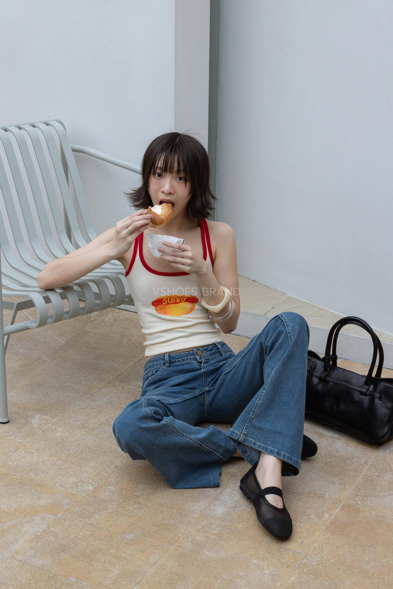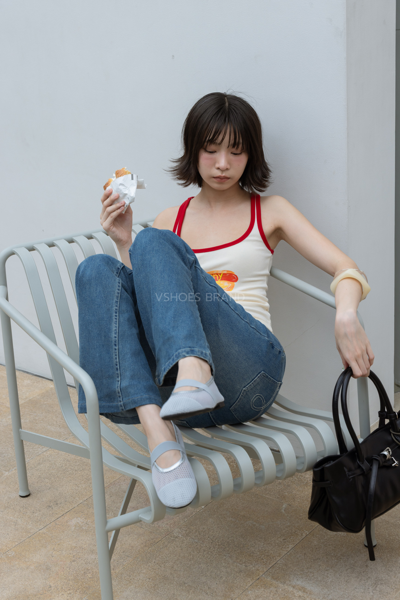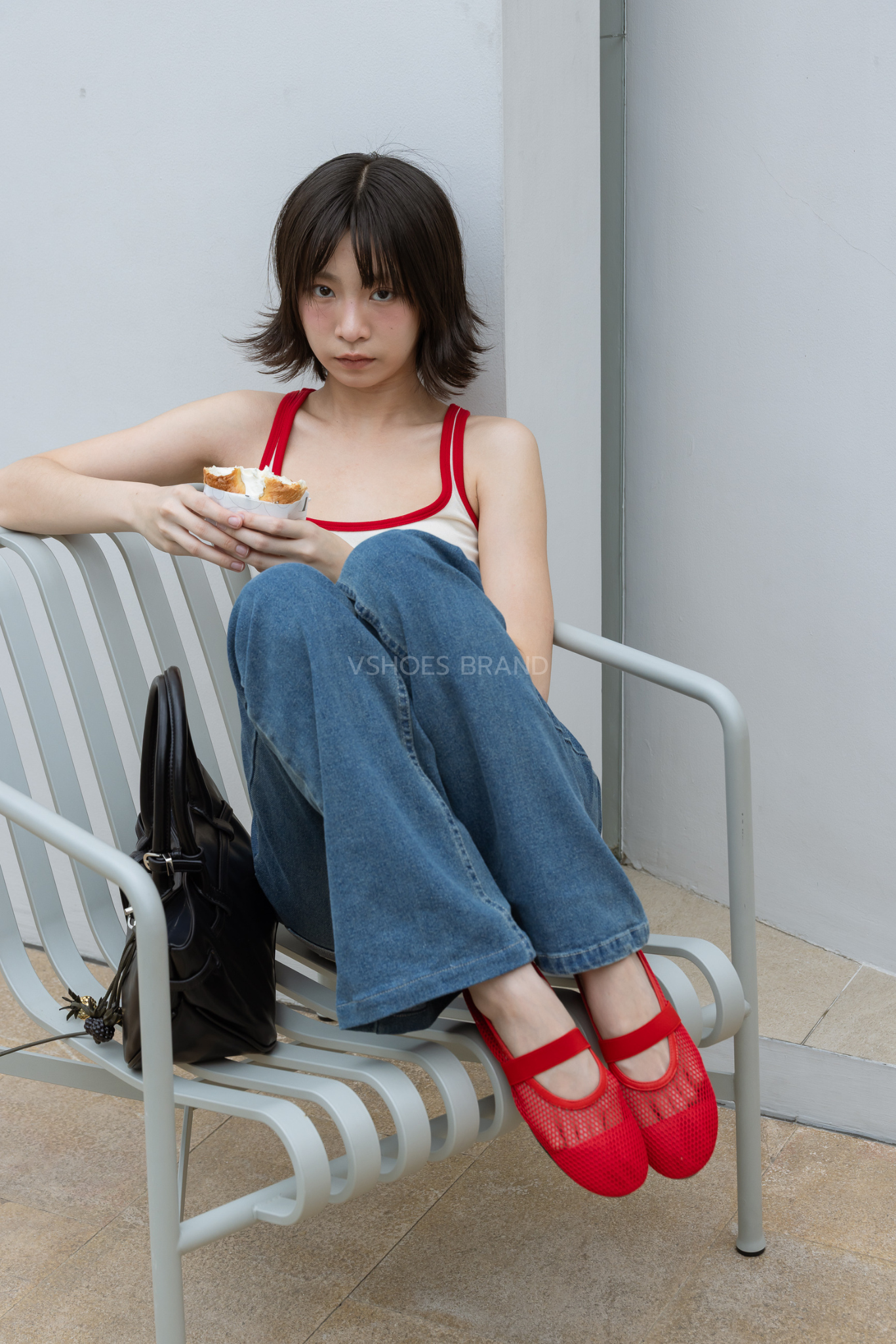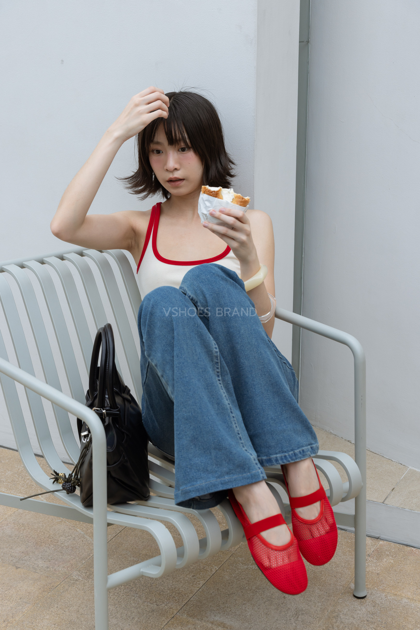 รองเท้าแมรี่เจน ตาข่าย สายคาดยืดหยุ่นได้
