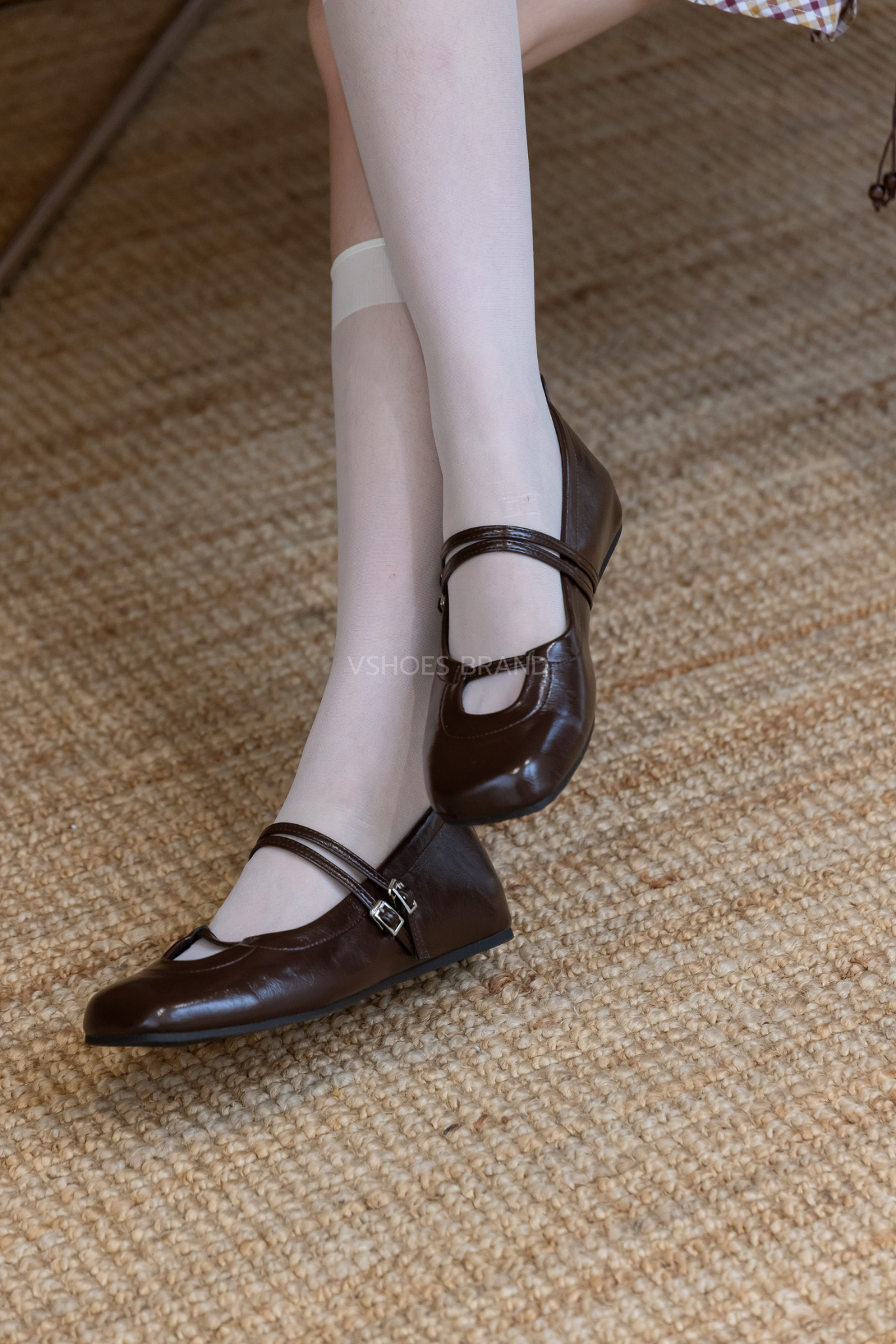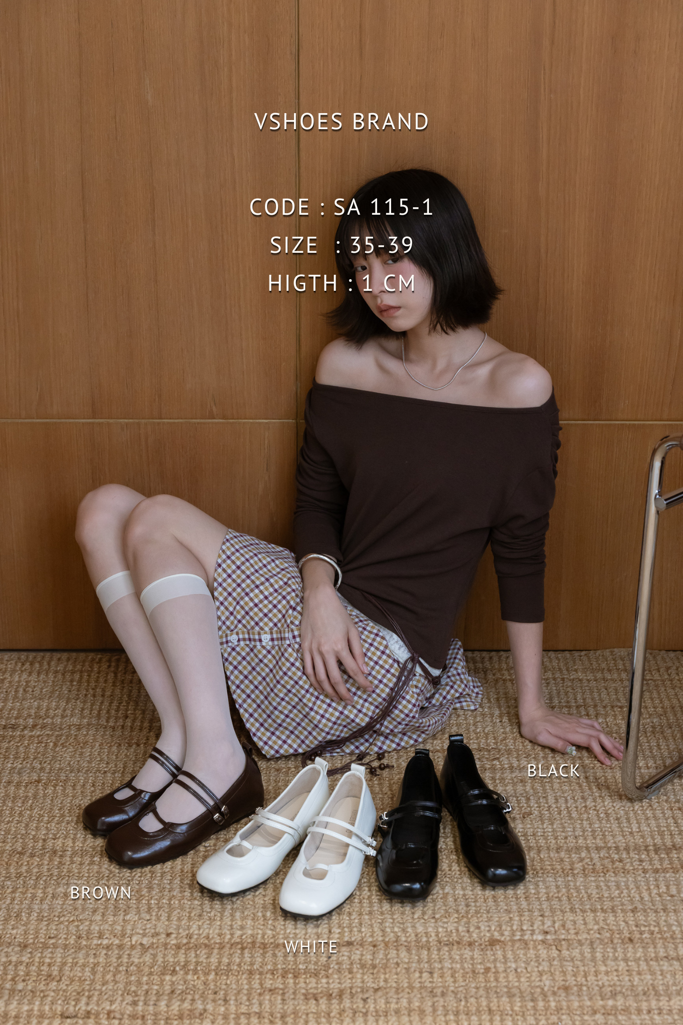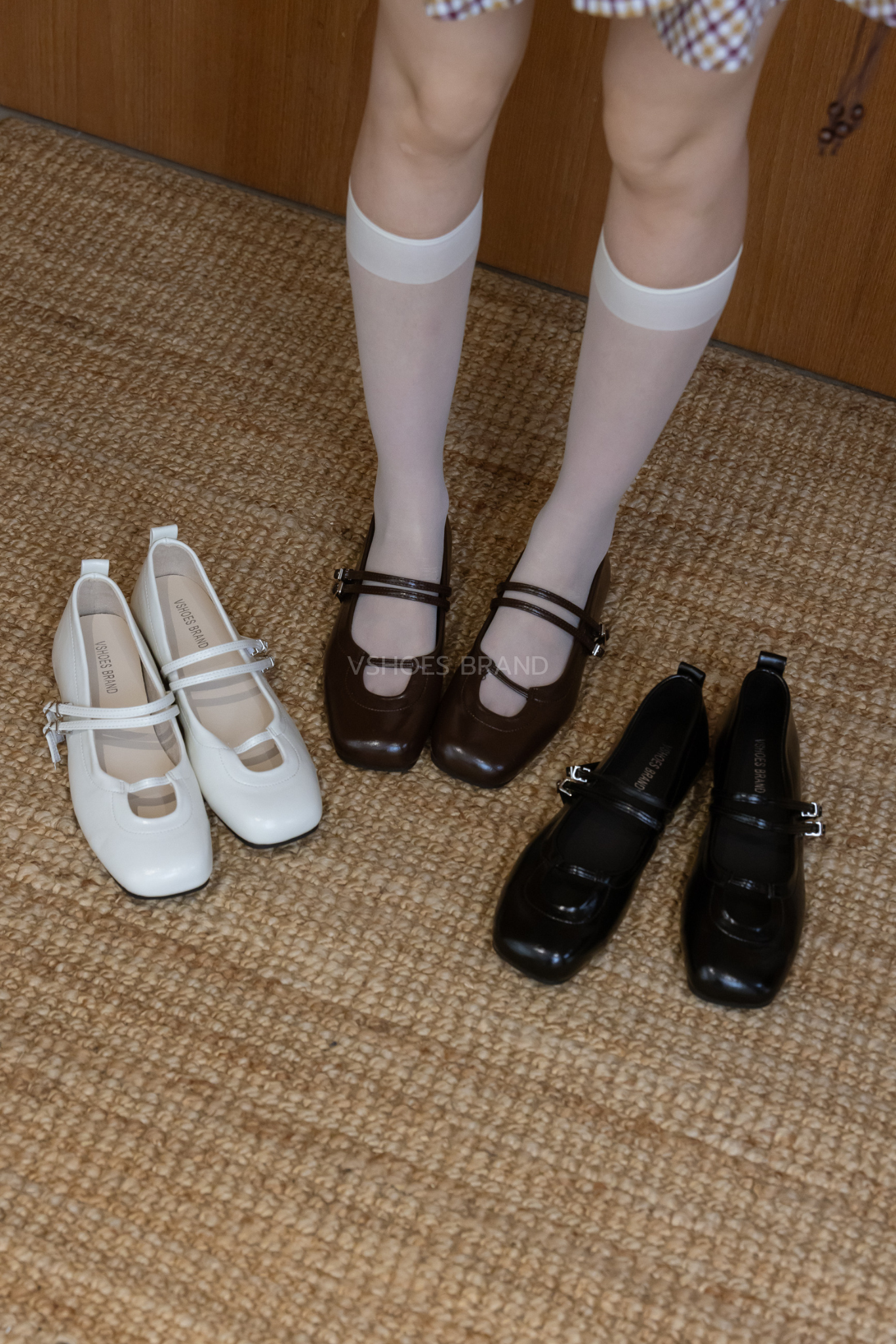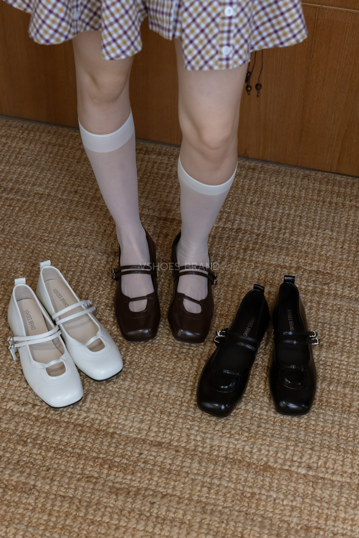 รองเท้าแมรี่เจน สายคาด 2 เส้น แต่งเข็มขัด