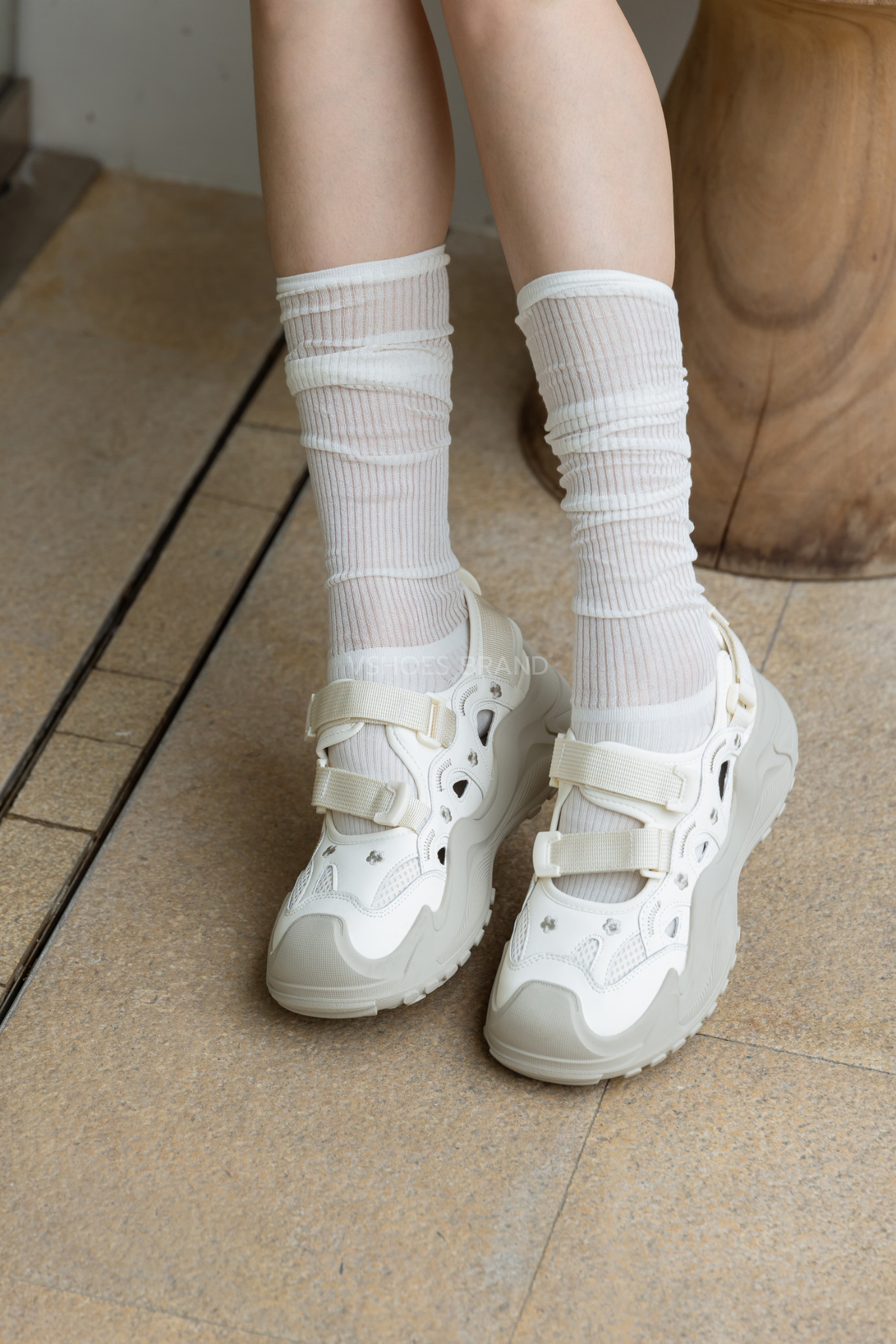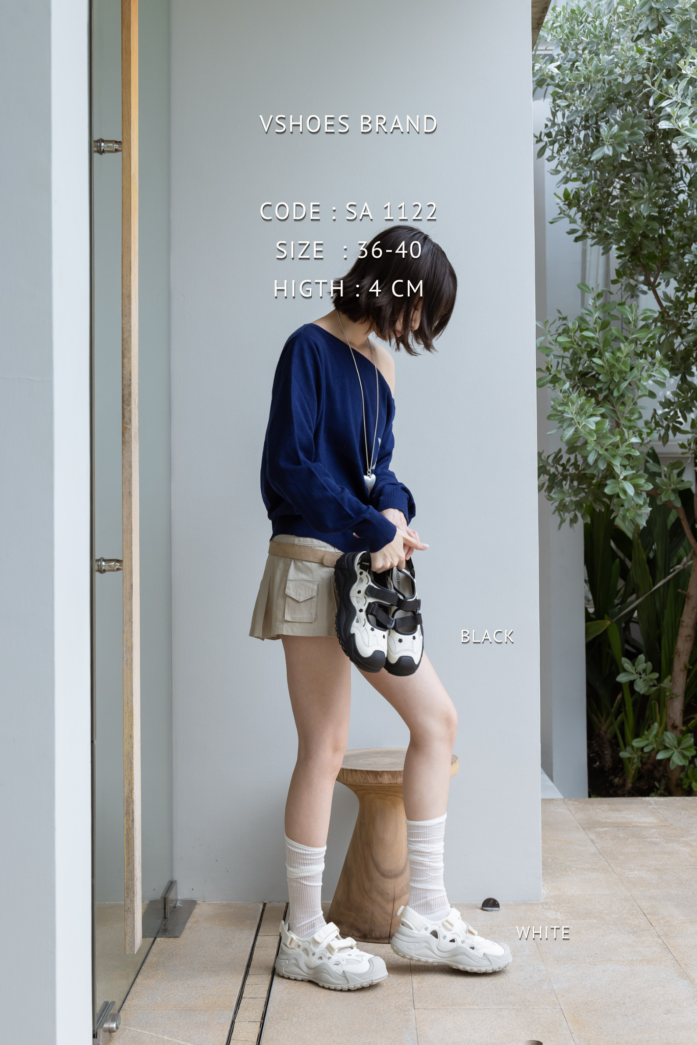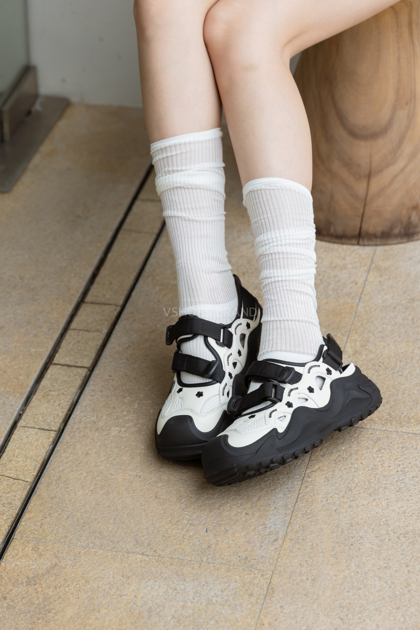 รองเท้าผ้าใบ สายคาด ตีนตุ๊กแก ปักดอกไม้