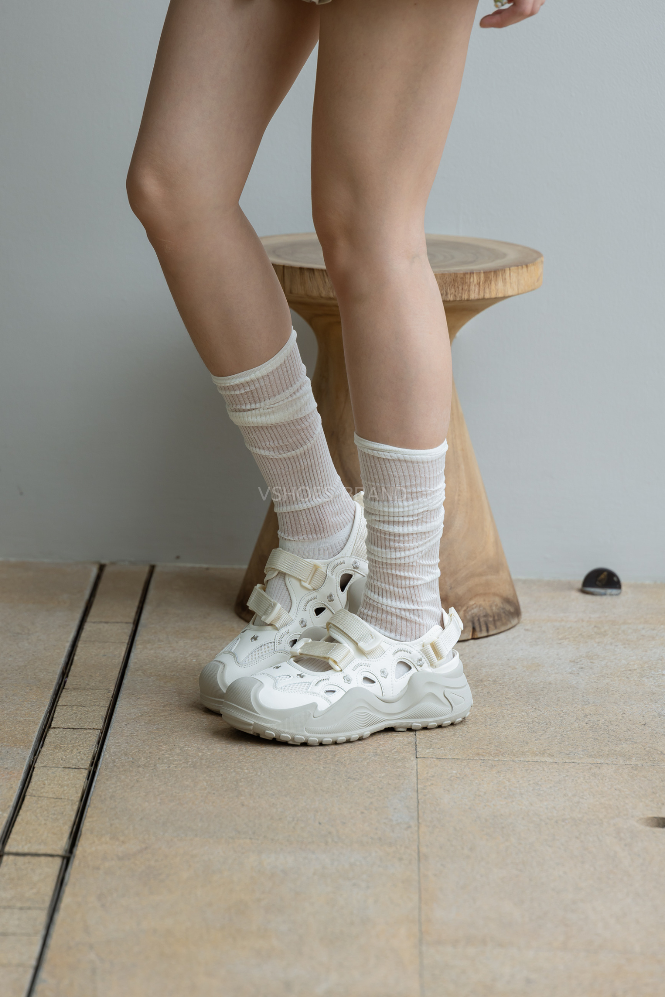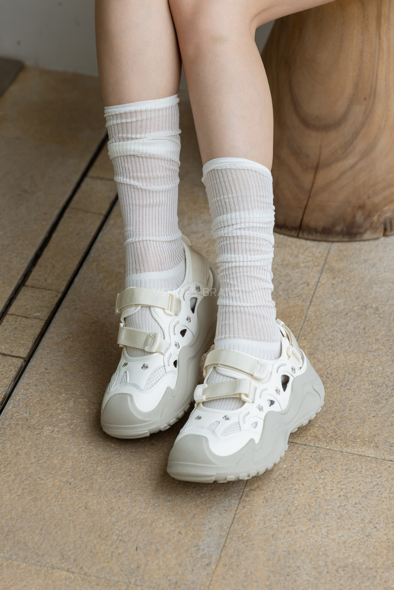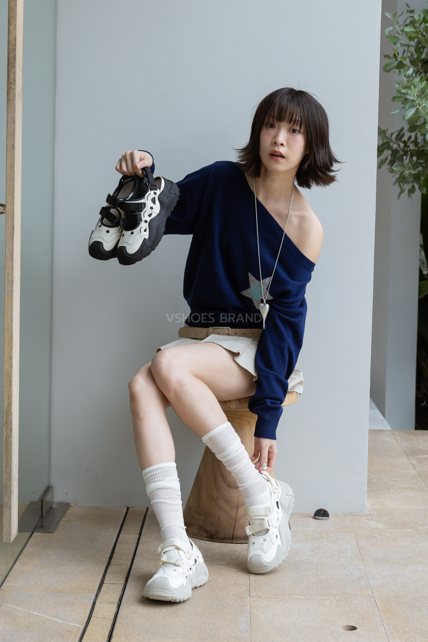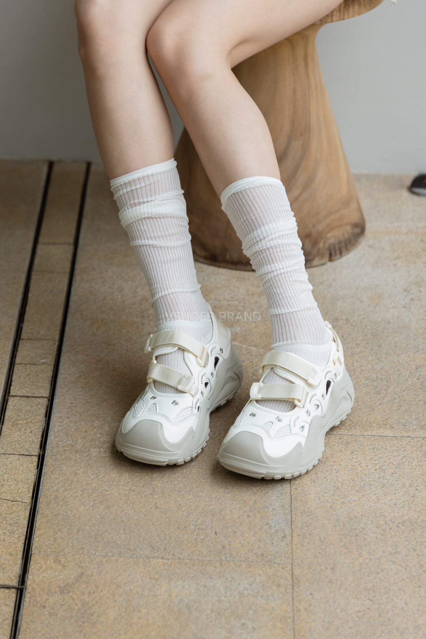 รองเท้าผ้าใบ สายคาด ตีนตุ๊กแก ปักดอกไม้