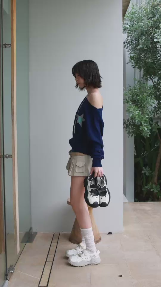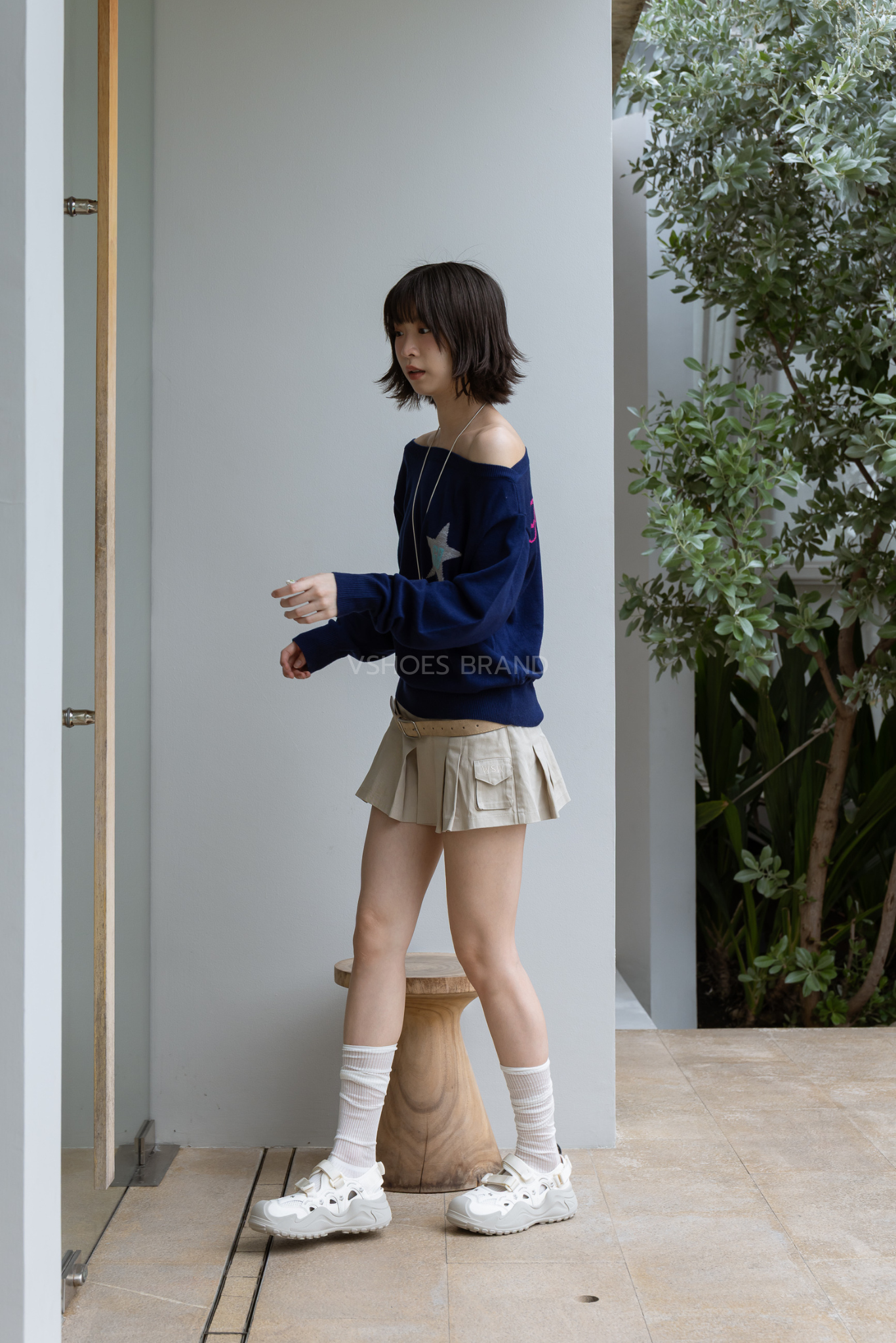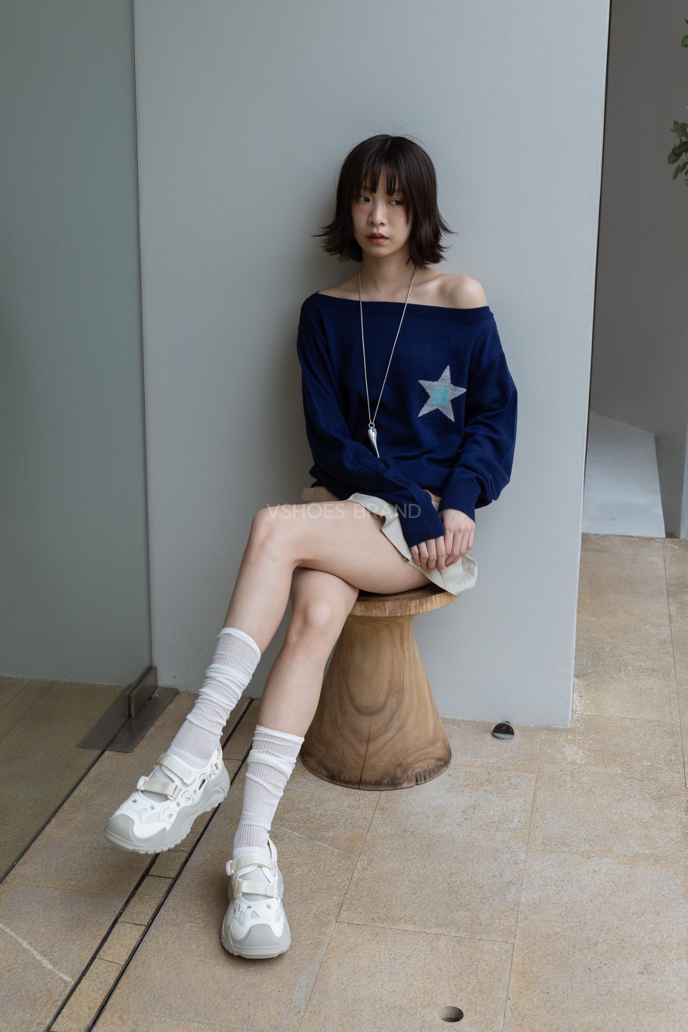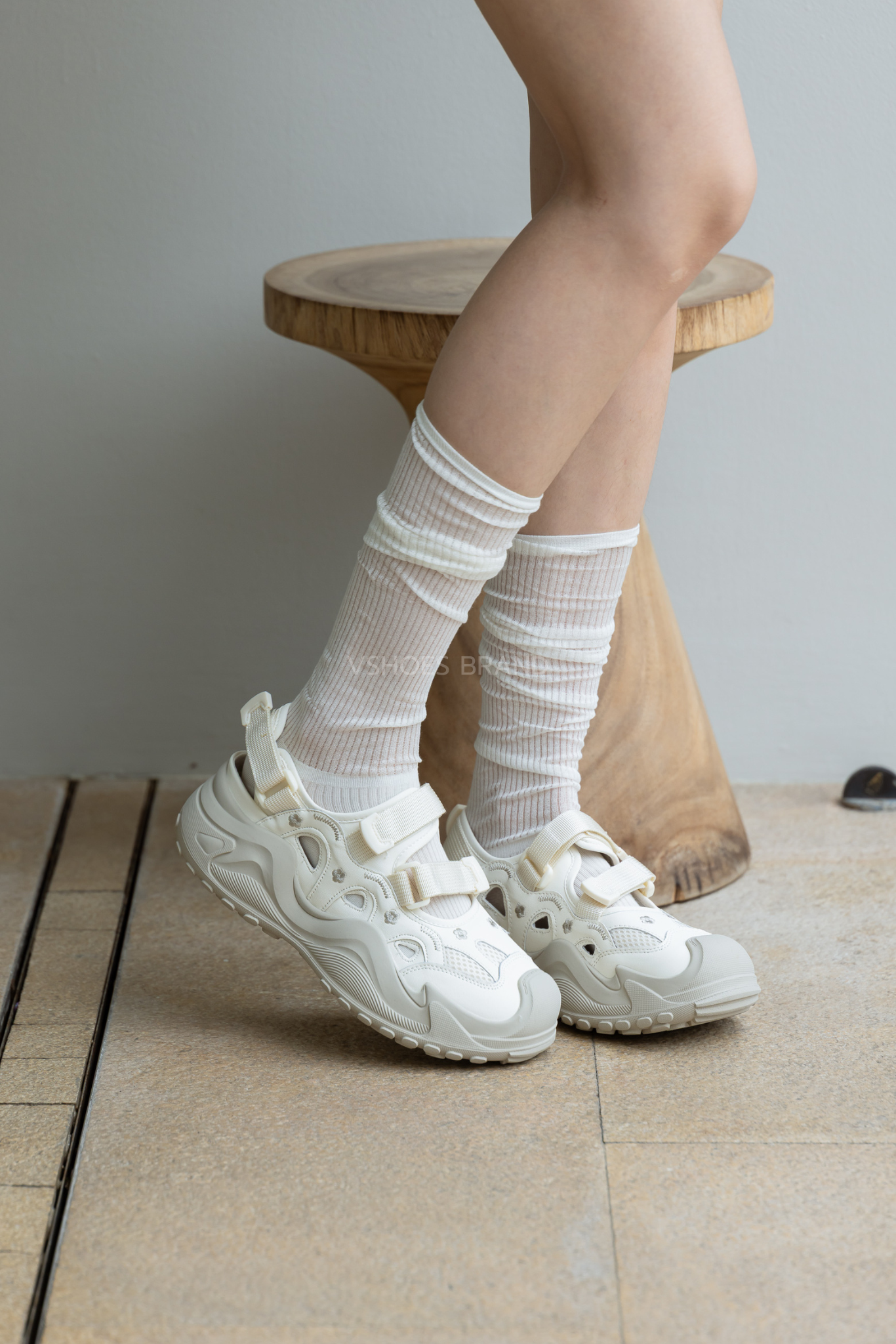 รองเท้าผ้าใบ สายคาด ตีนตุ๊กแก ปักดอกไม้