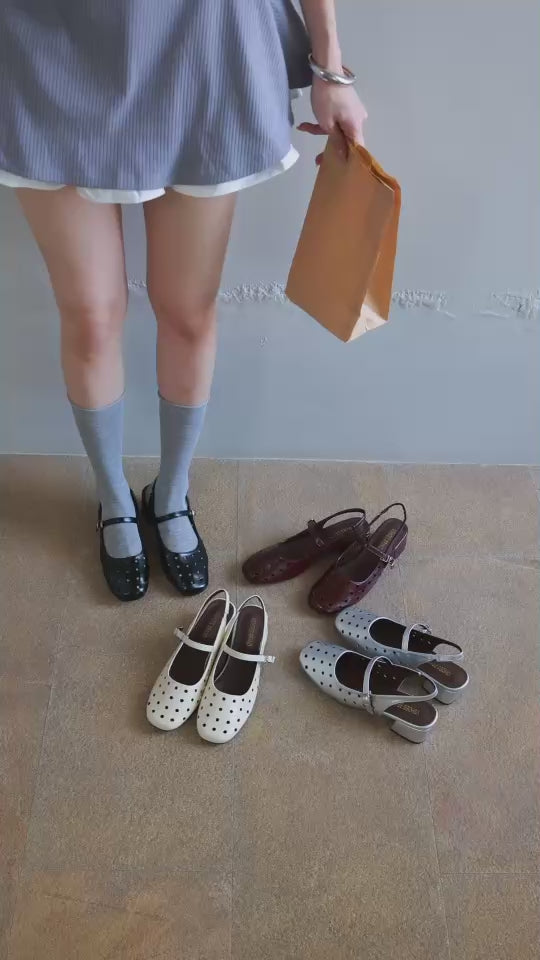 Classic meets modern with our soft leather Mary Jane shoes, featuring intricate openwork strap design and an edgy studded heel strap. Perfect for adding a playful yet polished touch to your outfit.