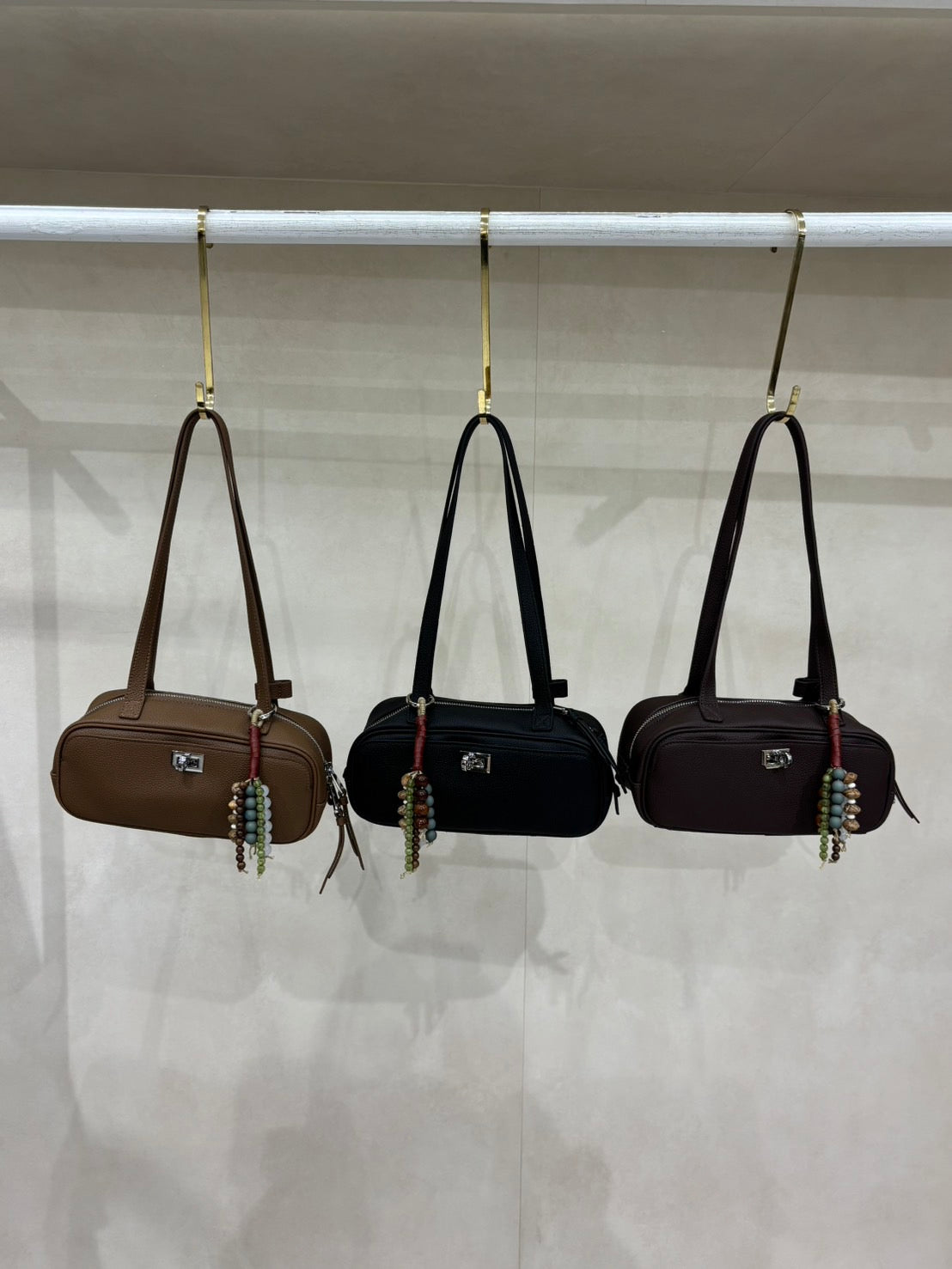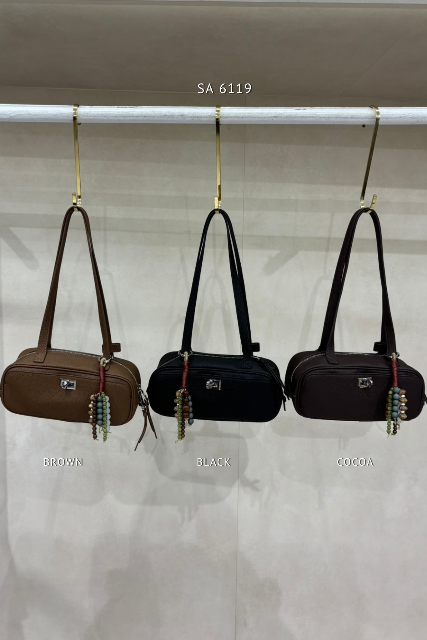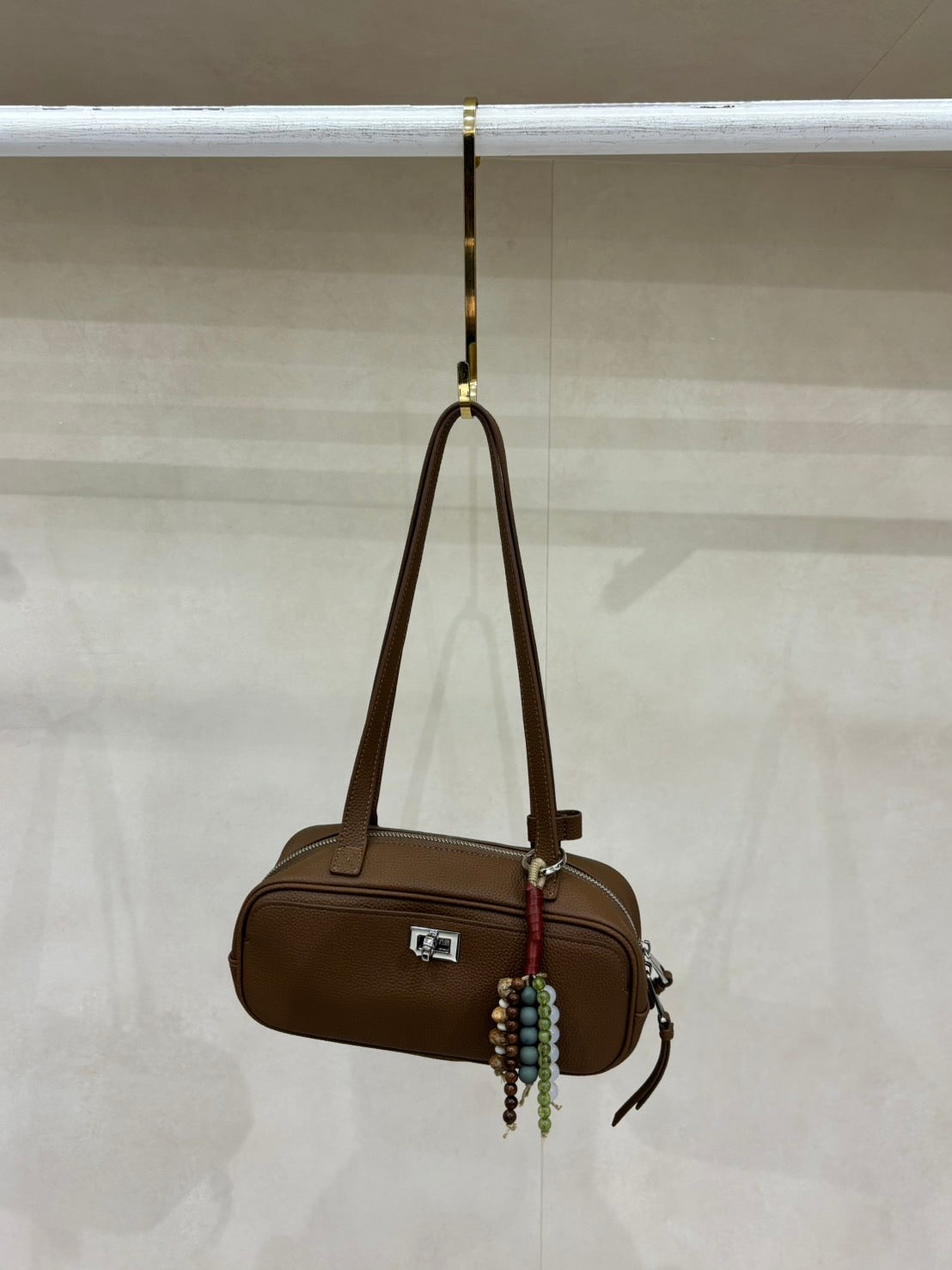 กระเป๋าสะพายไหล่ หนังไมโคร ทรงหมอน แต่งตัวล็อกอะไหล่เงิน แถมพวงกุญแจ