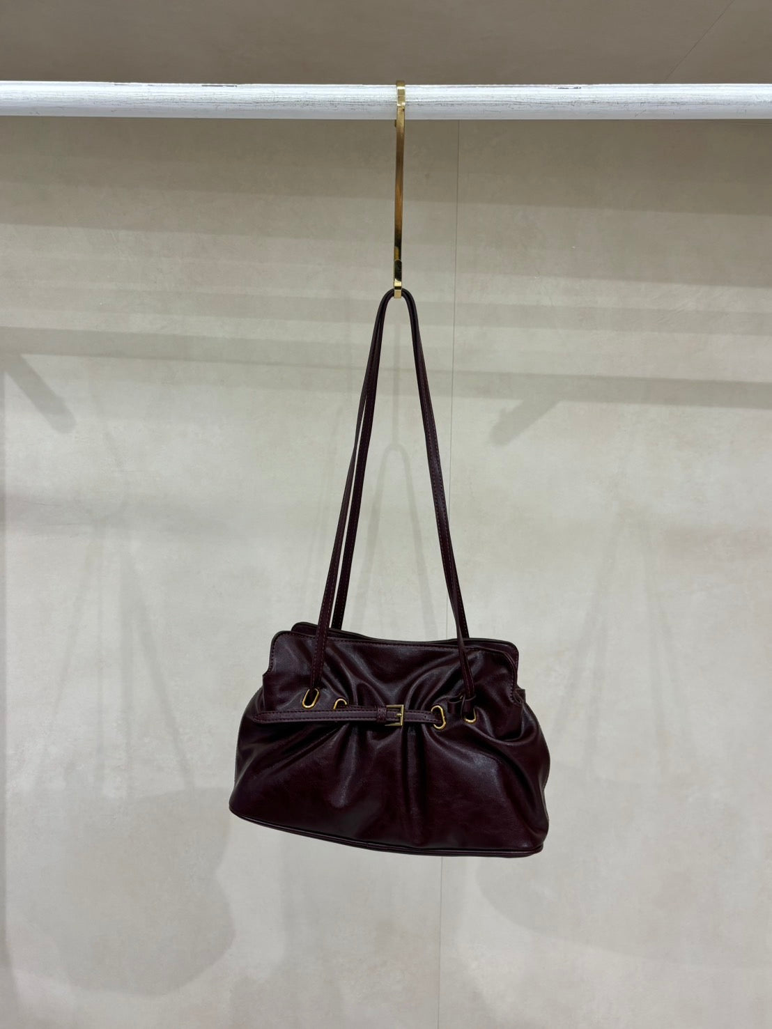 กระเป๋าสะพายไหล่ ทรงขนมจีบ แต่งเข็มขัด แถมพวงกุญแจ