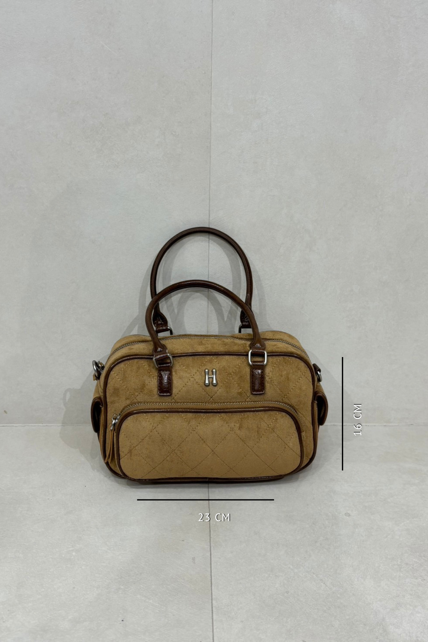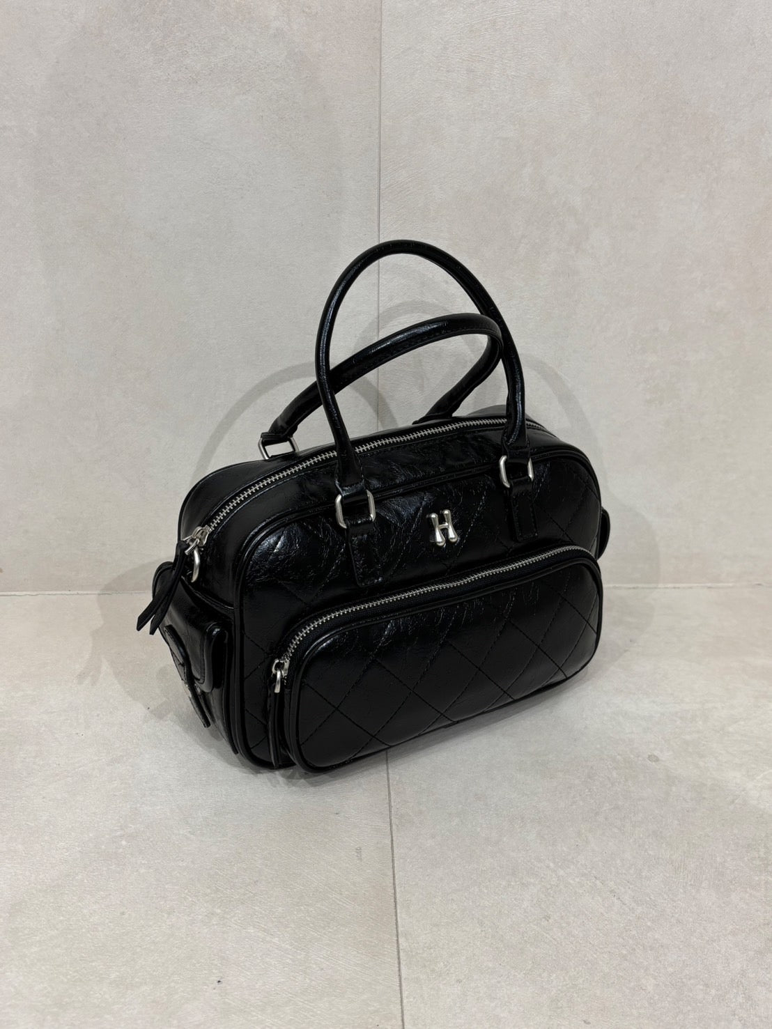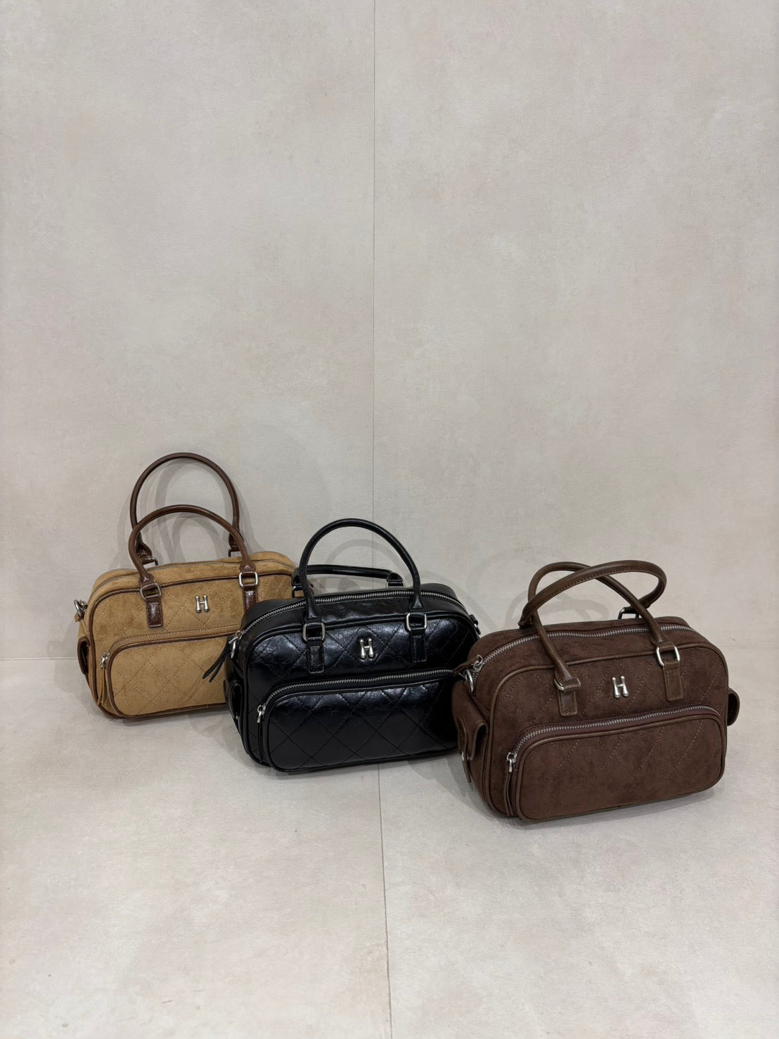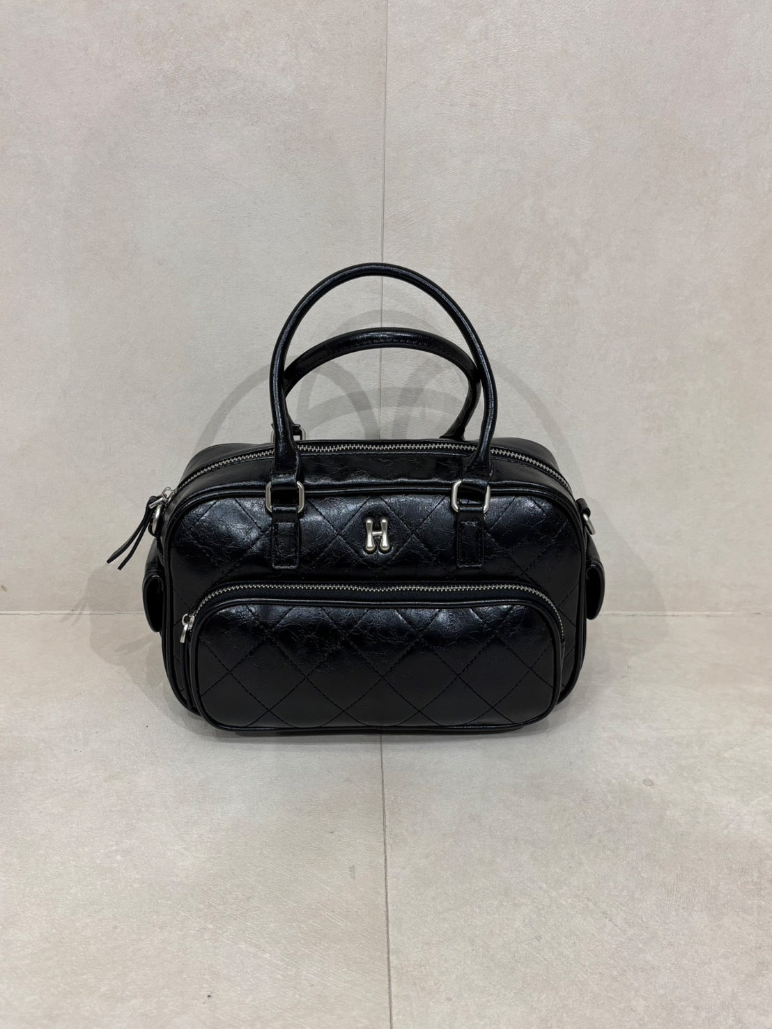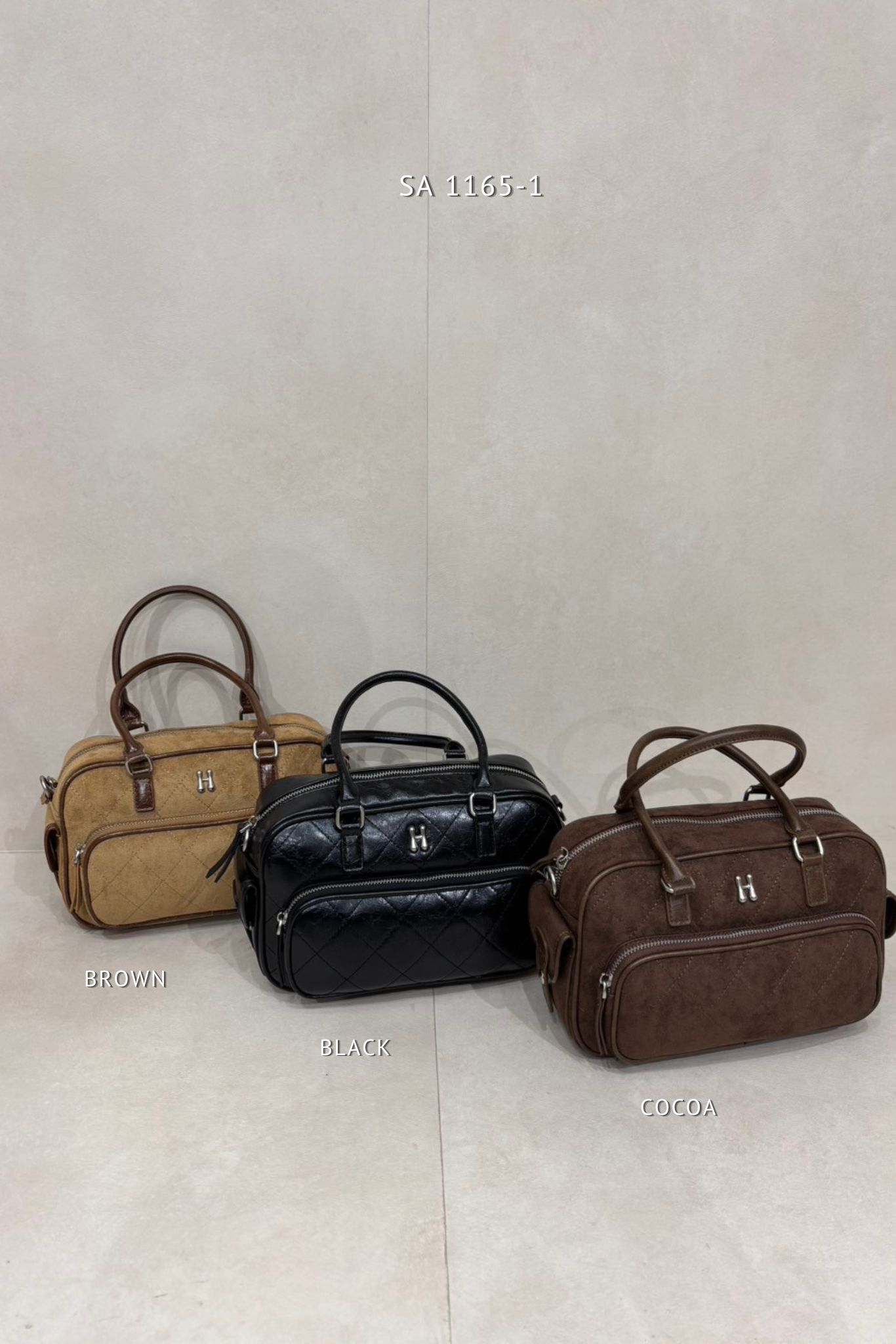 กระเป๋าถือ สะพายไหล่ 2 ช่องซิป แต่งอะไหล่เงิน