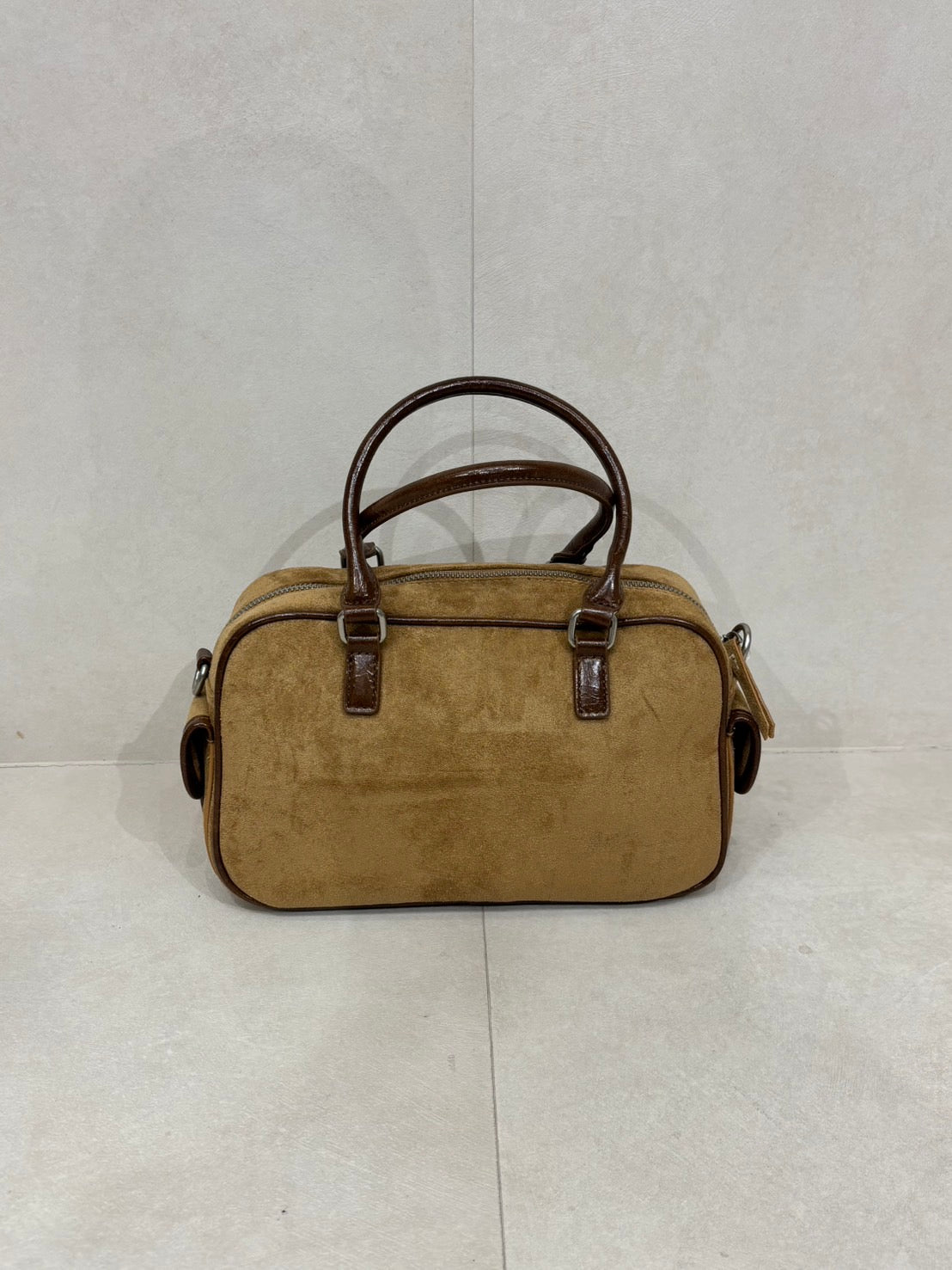 Handbag, shoulder bag, with 2 zipper compartments, and silver accessories.
