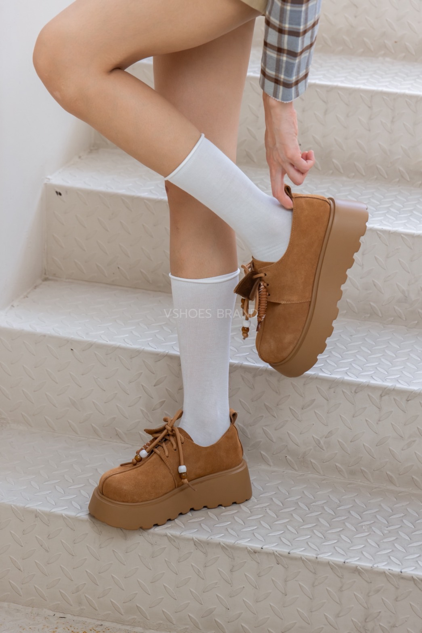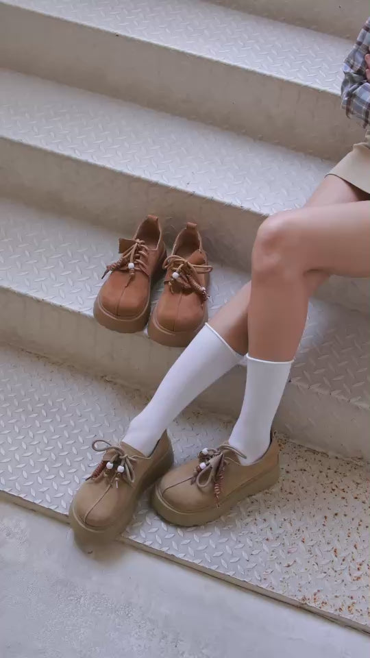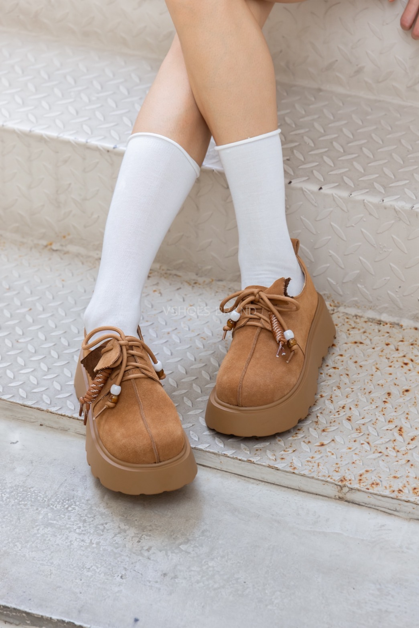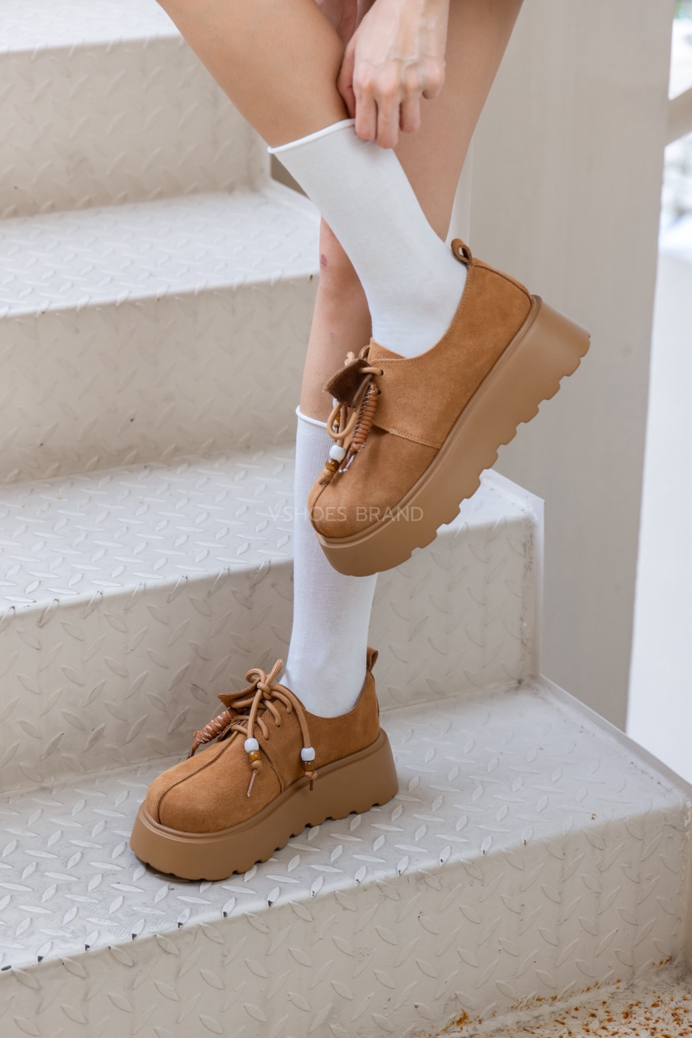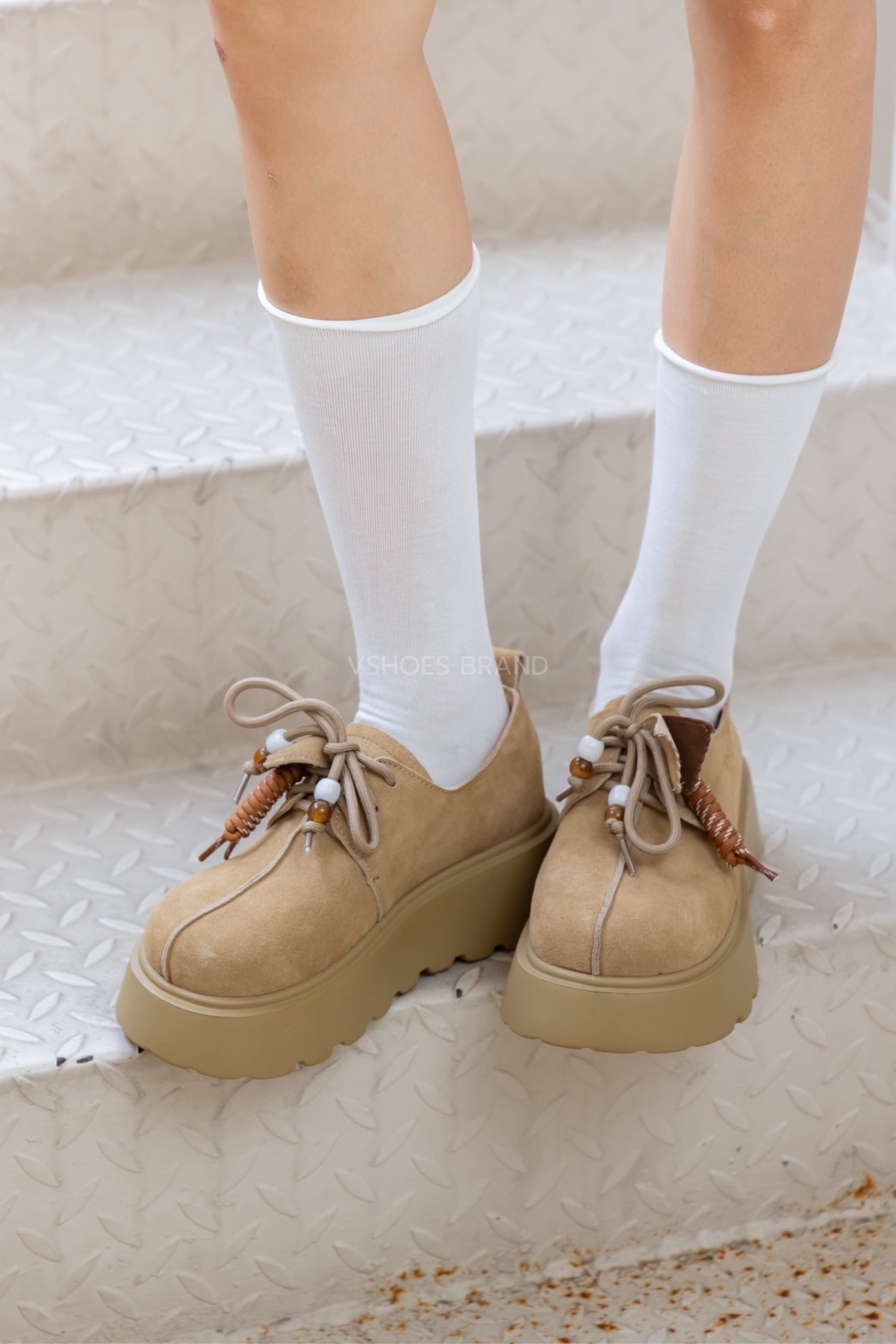 รองเท้าโลฟเฟอร์ หนังกลับ แต่งเชือก + ลูกปัด