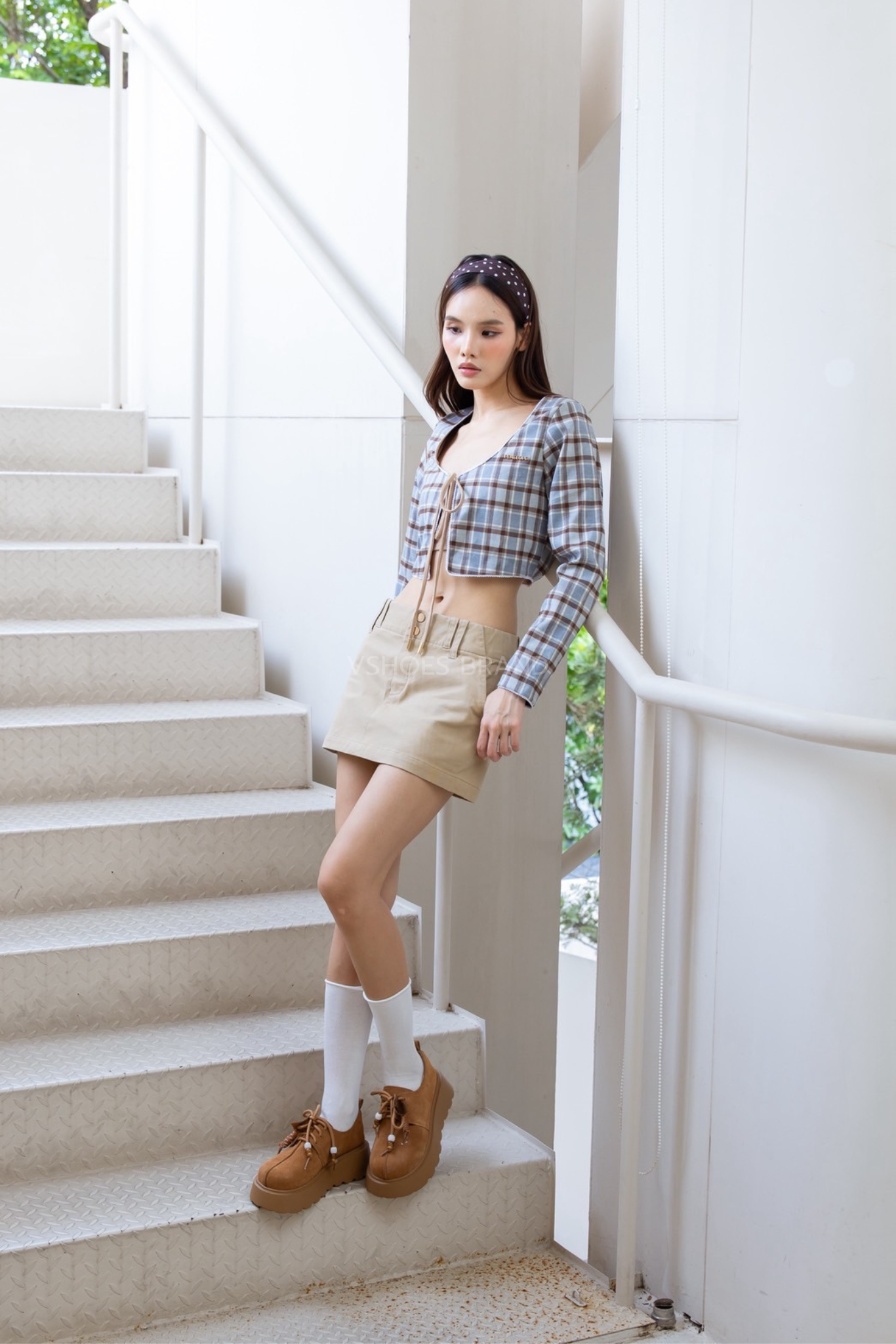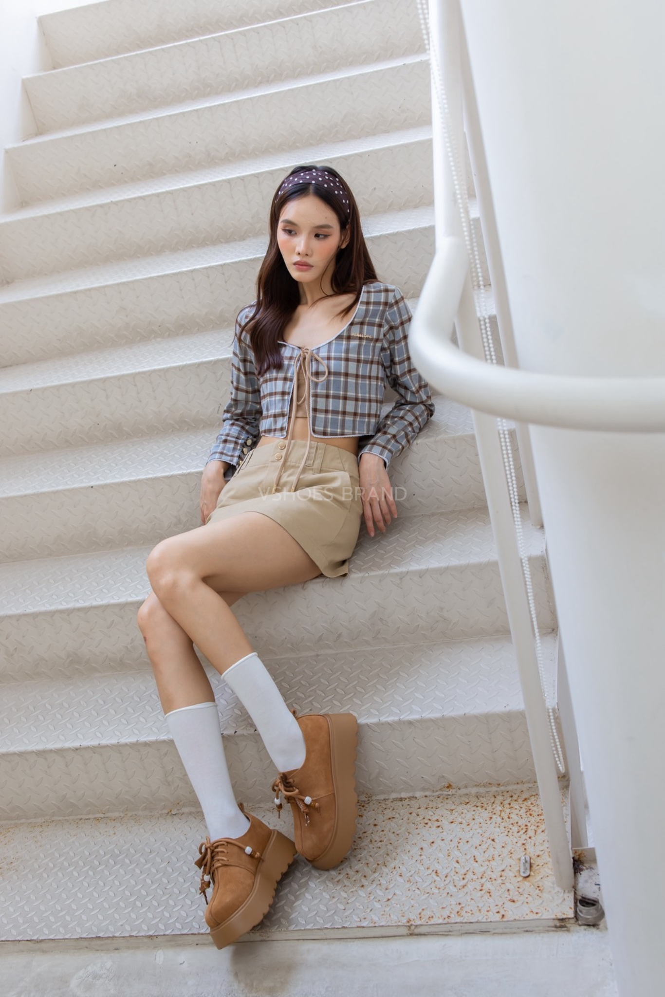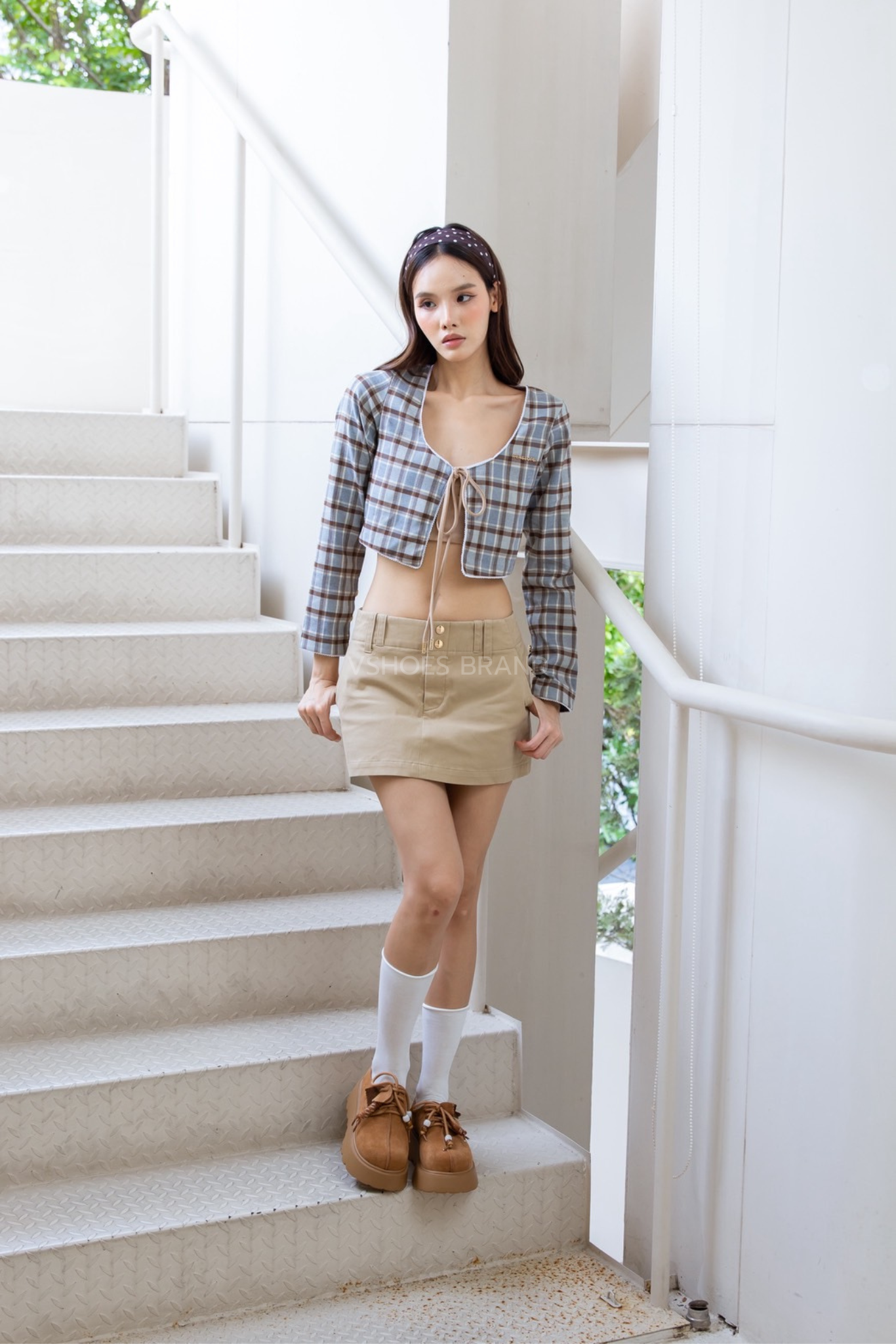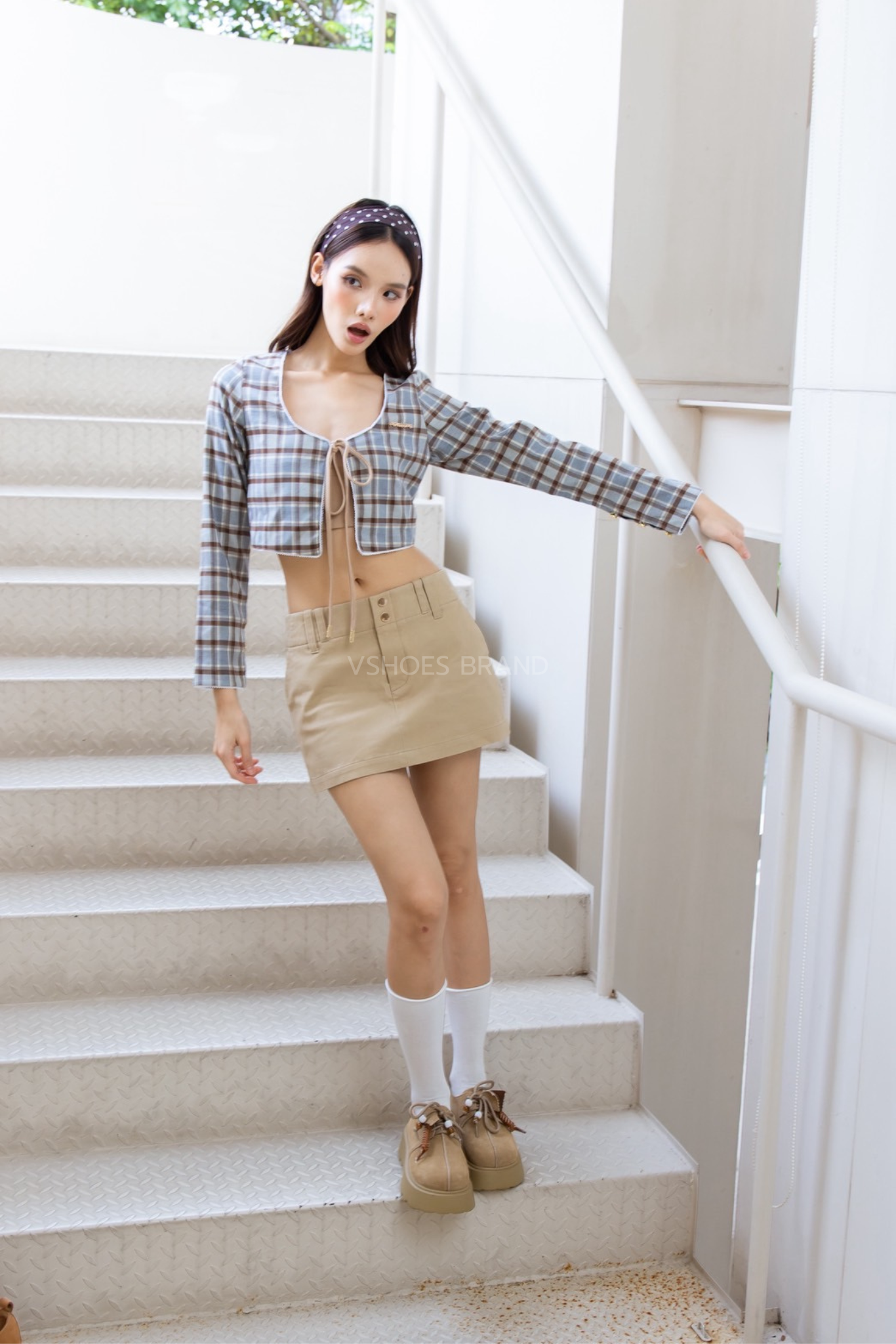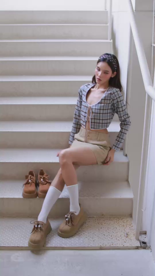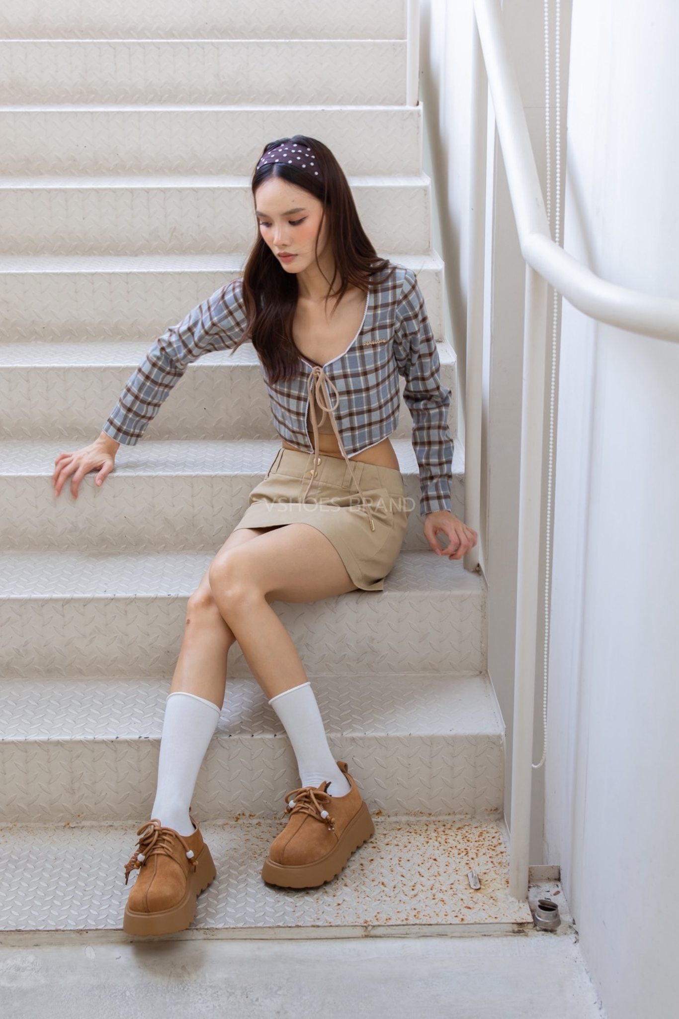 รองเท้าโลฟเฟอร์ หนังกลับ แต่งเชือก + ลูกปัด