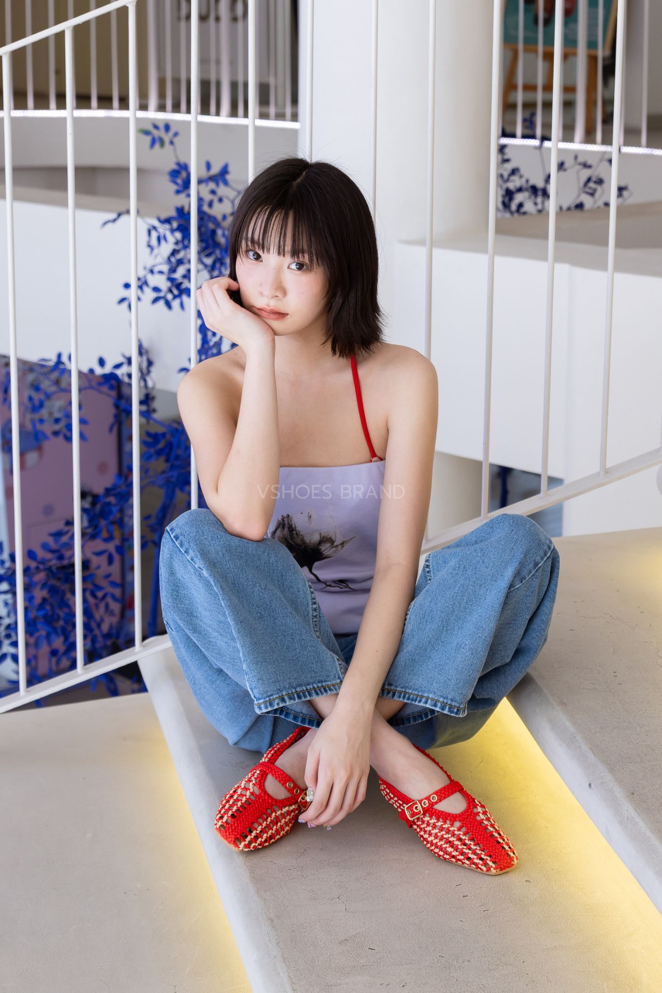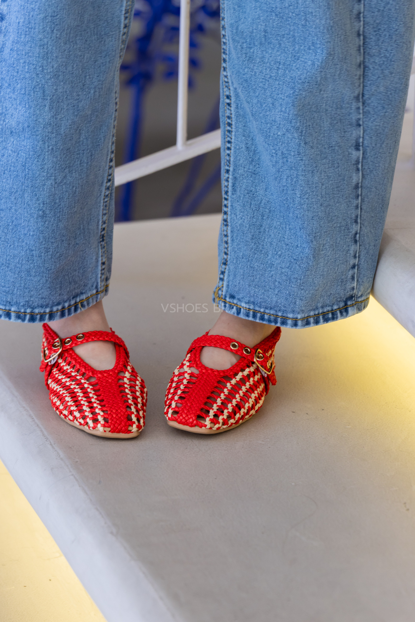 Mary Jane shoes, microfiber leather, woven design and belt straps decoration.