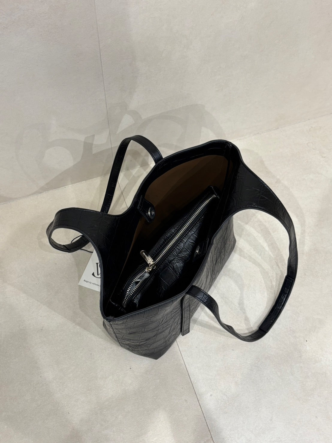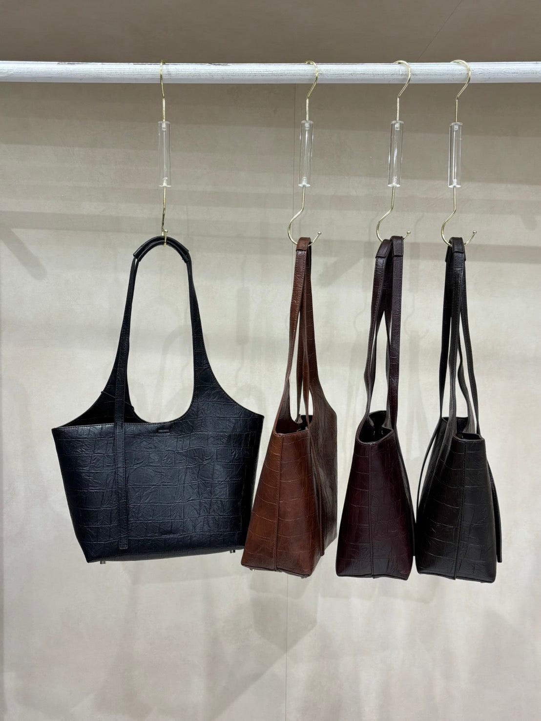 Stylish and spacious — Crocodile pattern leather tote shoulder bag that comes with a matching inner pouch. Perfect for everyday elegance.