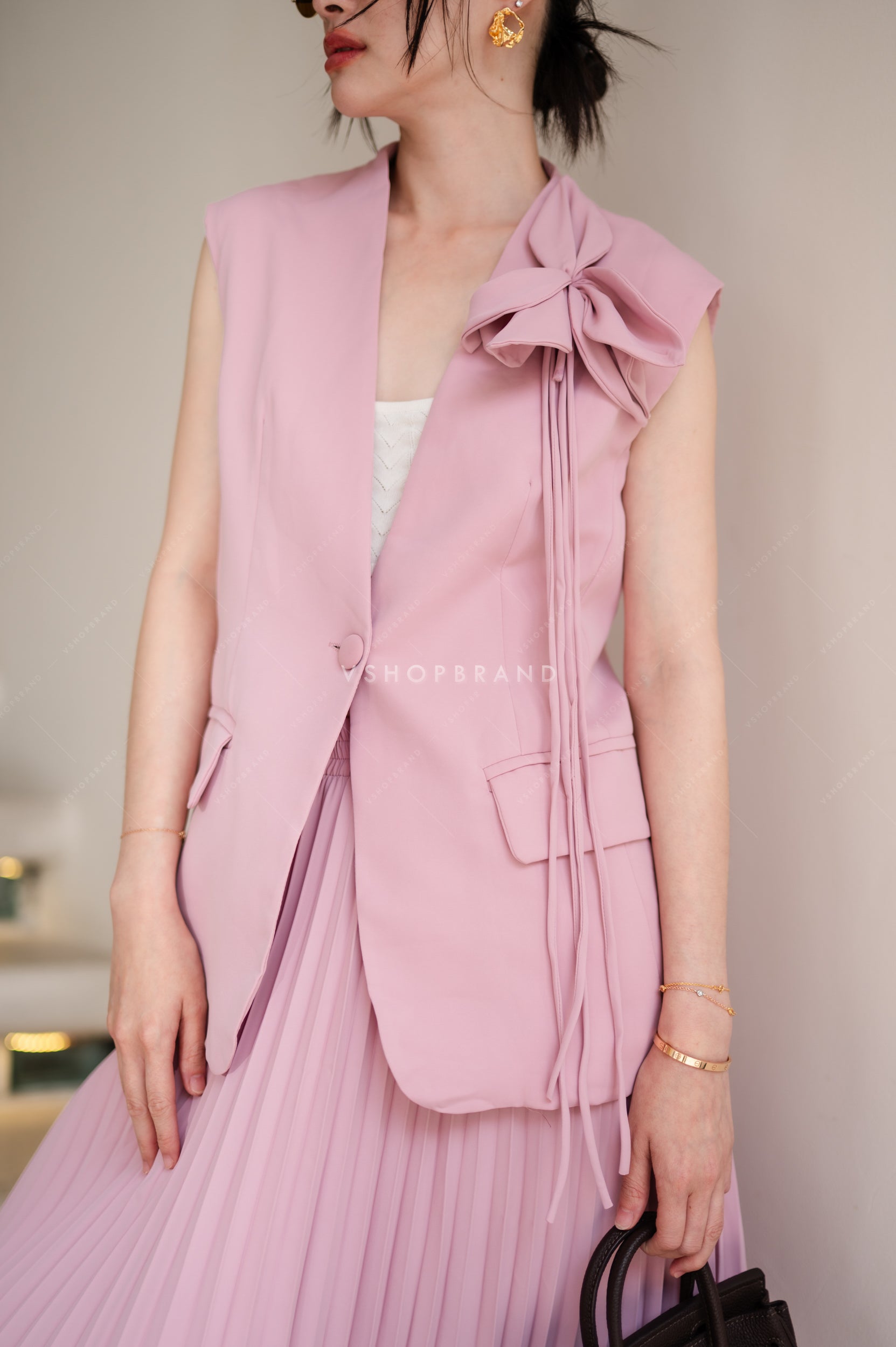 🖇️ Set กั๊กสูทแต่งดอกไม้+กระโปรงยาวอัดพลีท