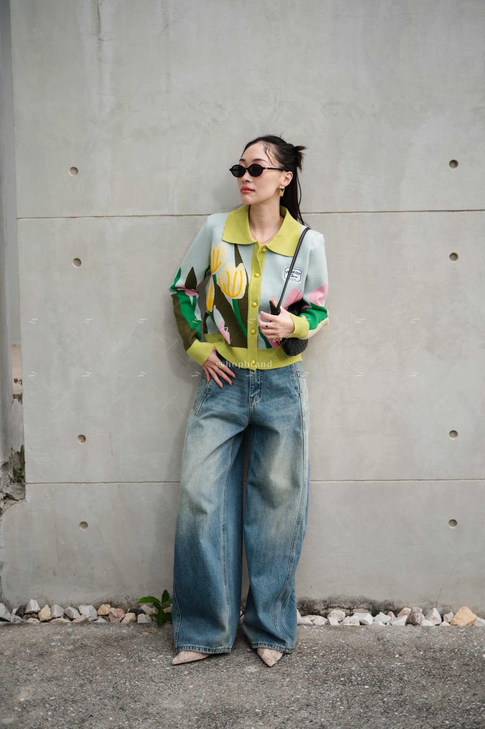 🖇️ Multi-Color Knit Sweater with Tulip Embroidery