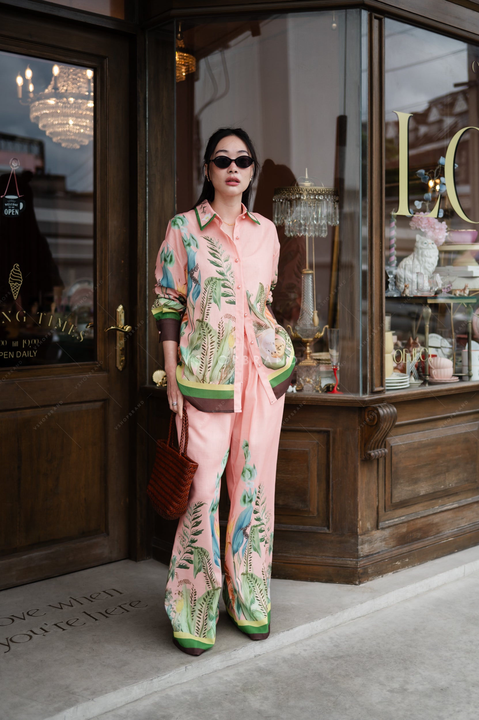 ποΈ Long-Sleeve Orchid Print Shirt + Full-Length Pants Set