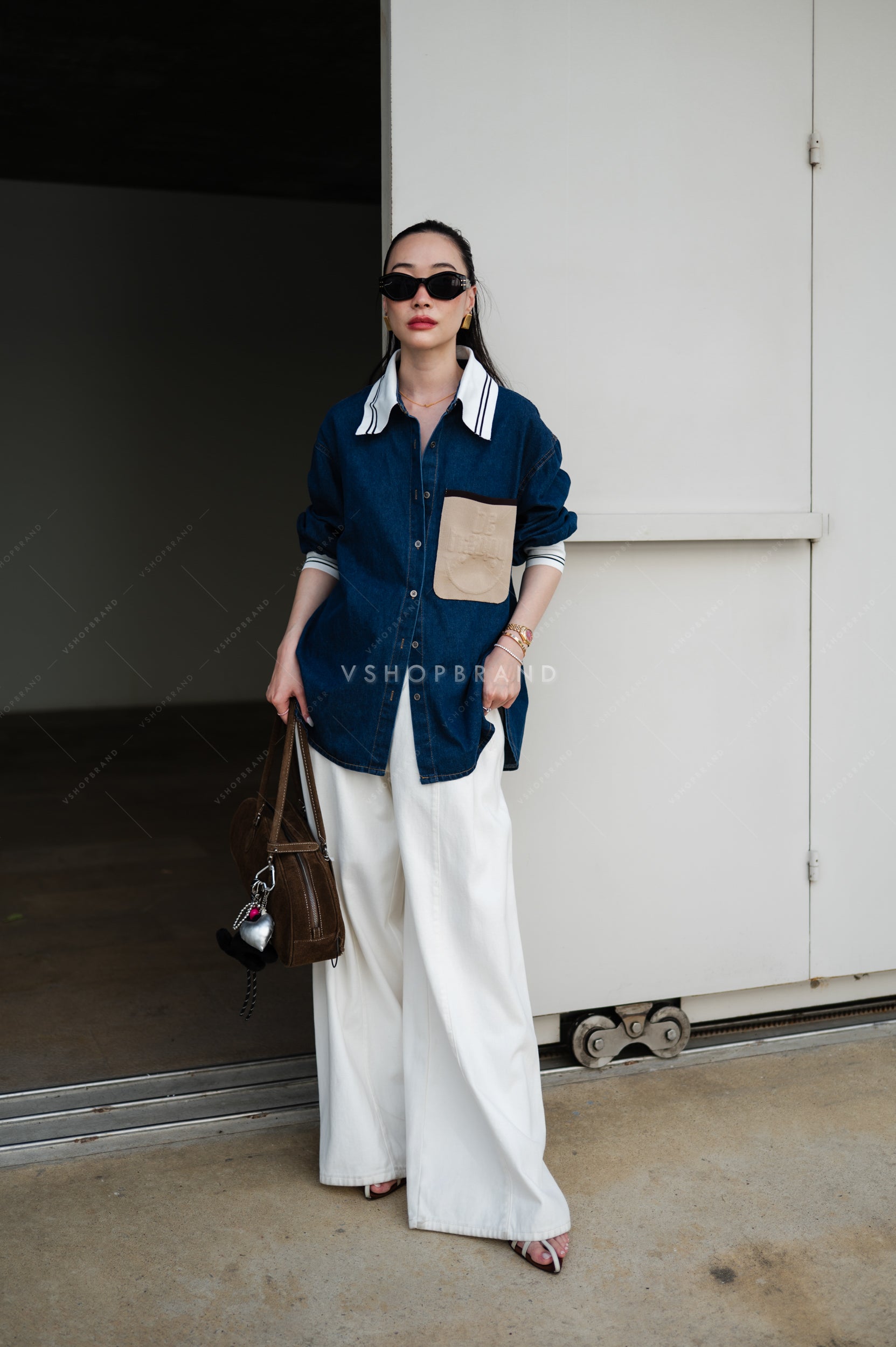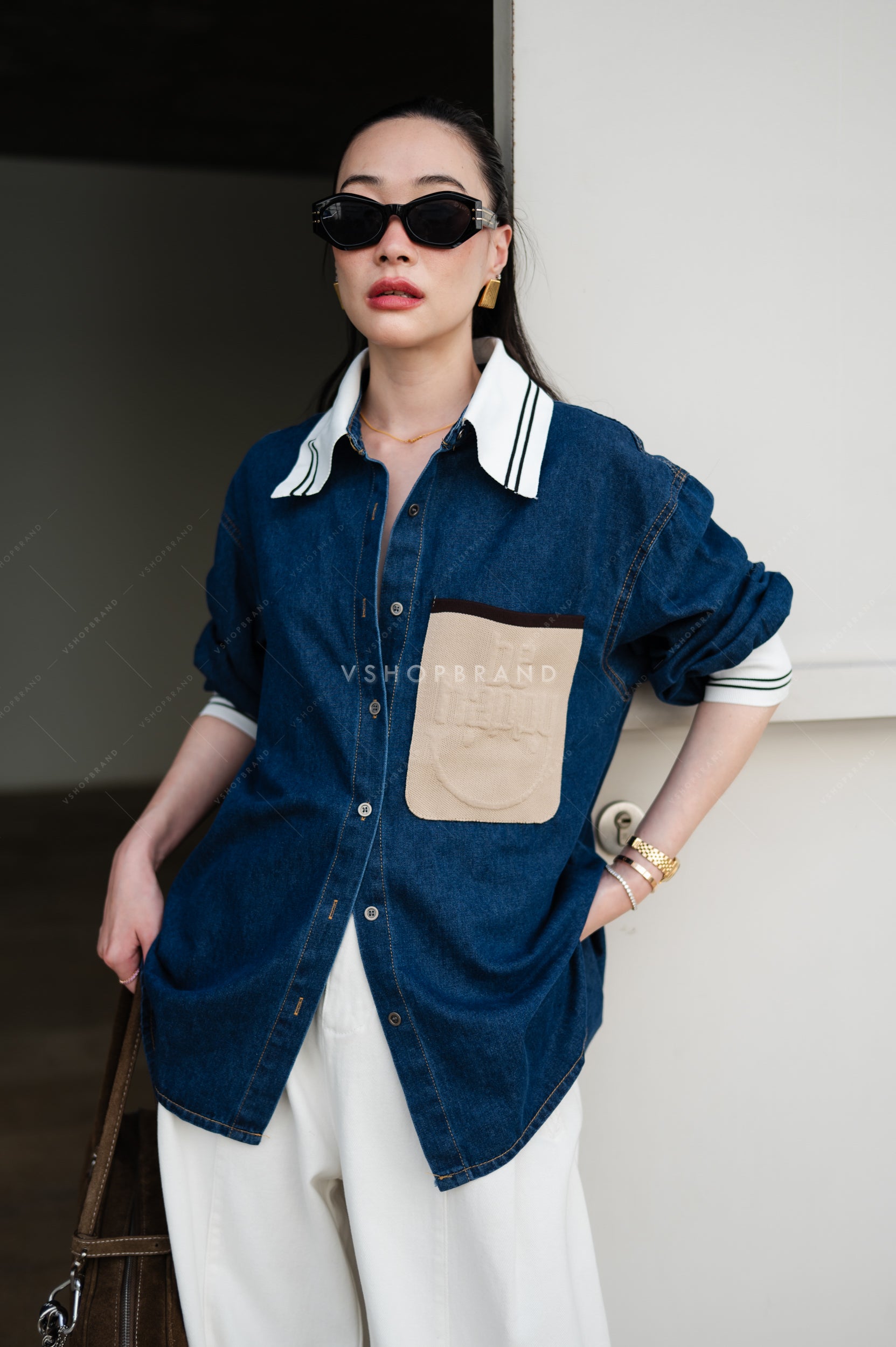 🖇️ Long Sleeve Denim Shirt with Collar + Knitted Pocket